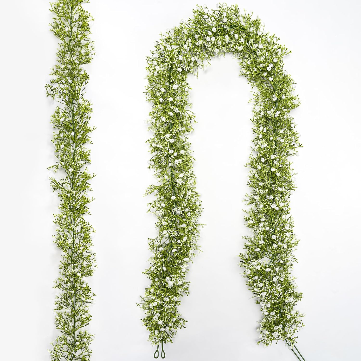 2 Pcs 5.8ft Artificial Baby Breath Flower Vines, Babys Breath Artificial Flowers Real Touch Faux Gypsophila Hanging Fake Baby's Breath Garlands for Wedding and Baby Shower Decor(White)