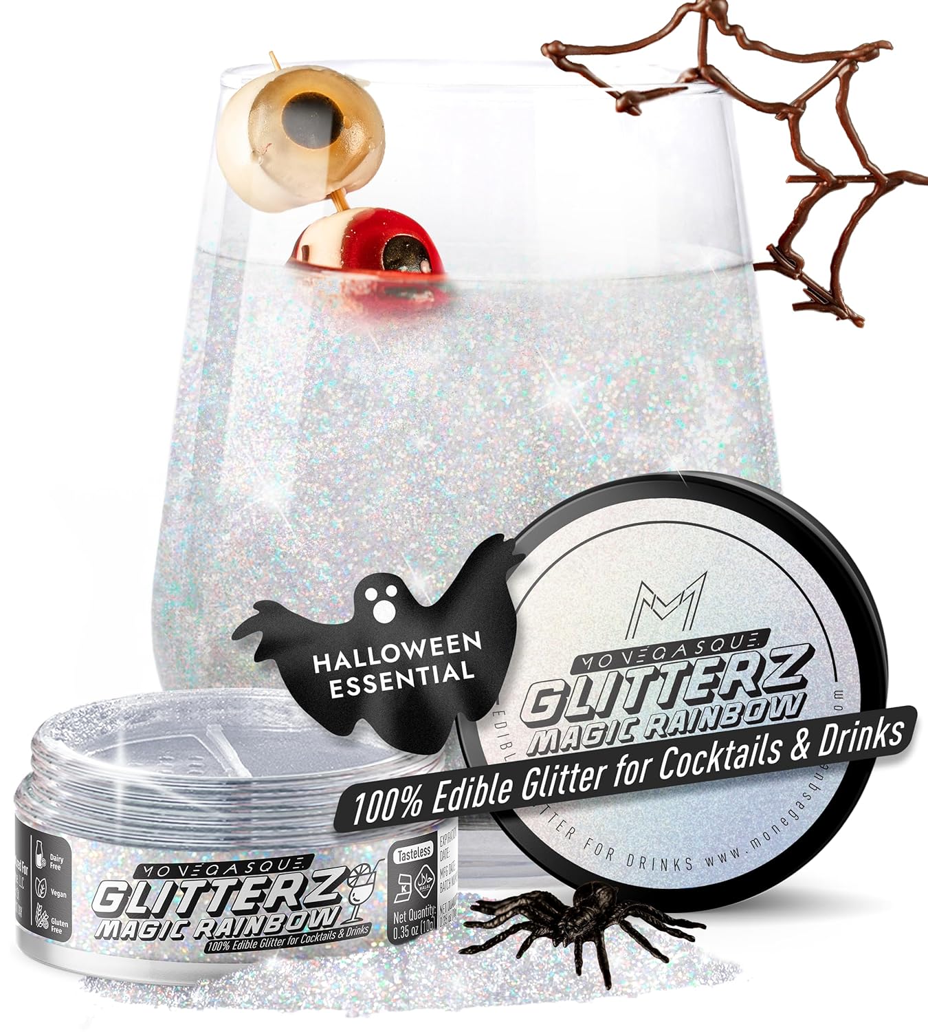 - PREMIUM EDIBLE GLITTER FOR COCKTAILS – Add a touch of glamour to your creations with MONÉGASQUE Glitterz. Perfect for cocktails, cakes, and more, our halloween glitter is flavorless and safe, crafted from mica-based pearlescent and food-grade colorants.