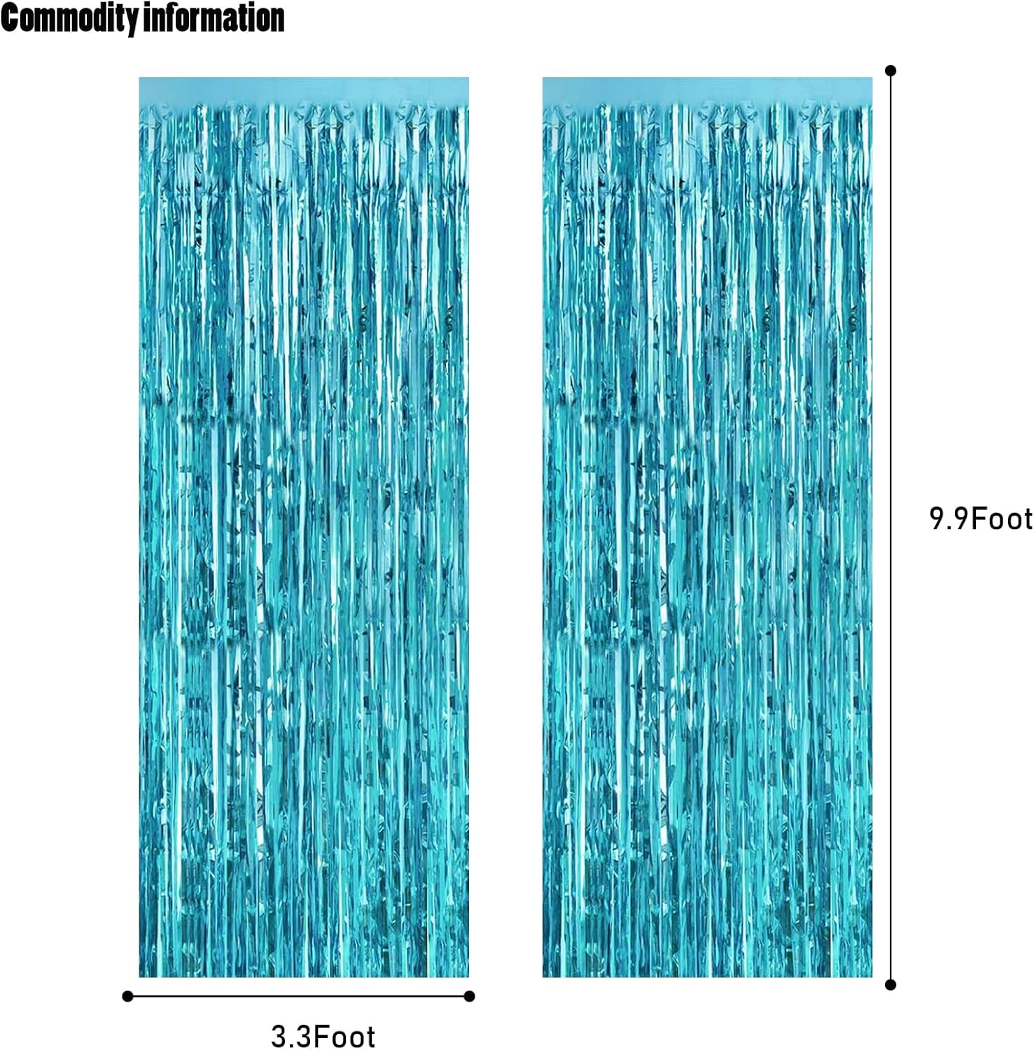 - 🎉PACKAGE INCLUDED : 2 pack of light blue foil fringe curtains, the size of each tinsel curtain is 3.3 ft x 8.2 ft, enough length for hanging on a door or covering a wall fully, suitable for any parties.
