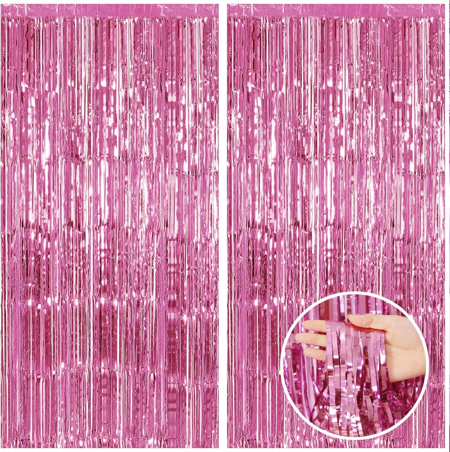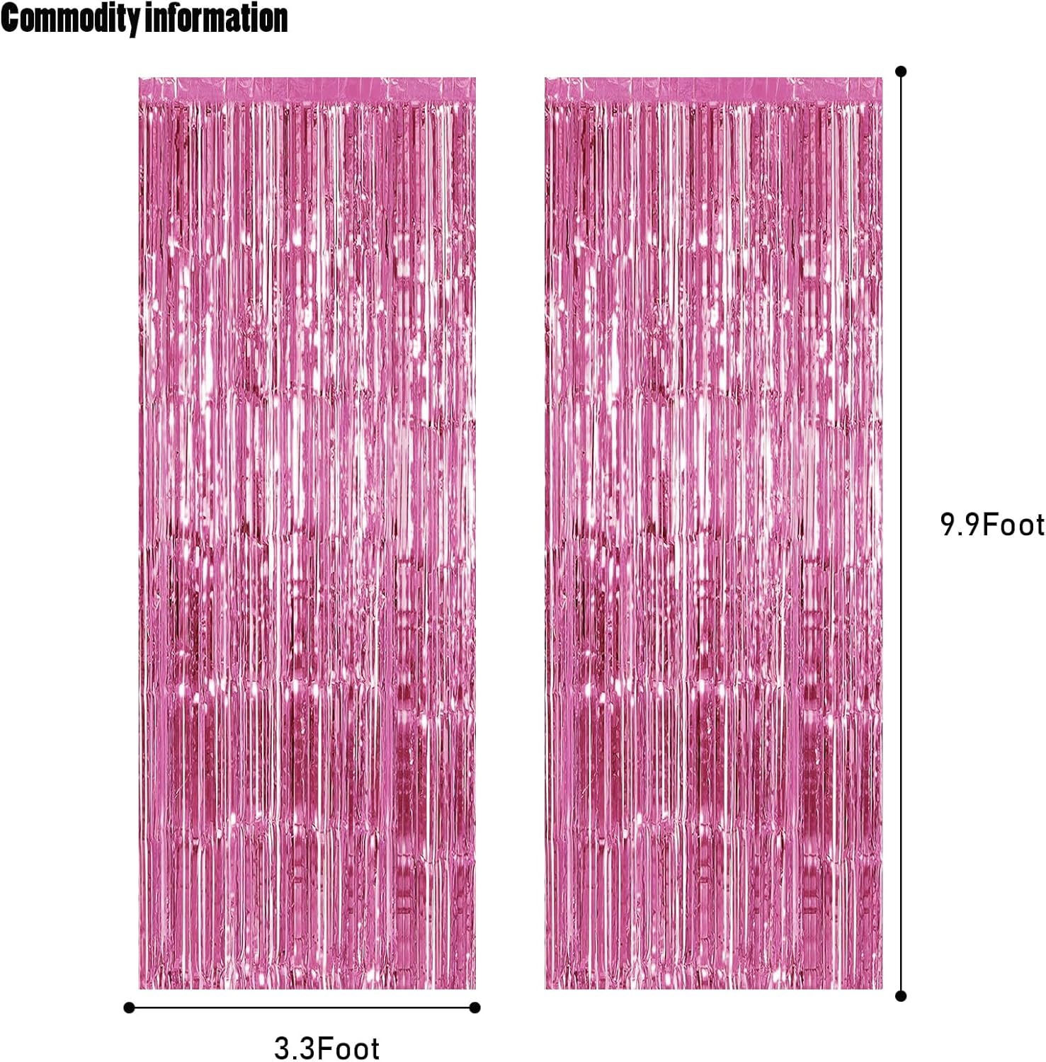 - 🎉PACKAGE INCLUDED : 2 pack of pink foil fringe curtains, the size of each tinsel curtain is 3.3 ft x 8.2 ft, enough length for hanging on a door or covering a wall fully, suitable for any parties.
