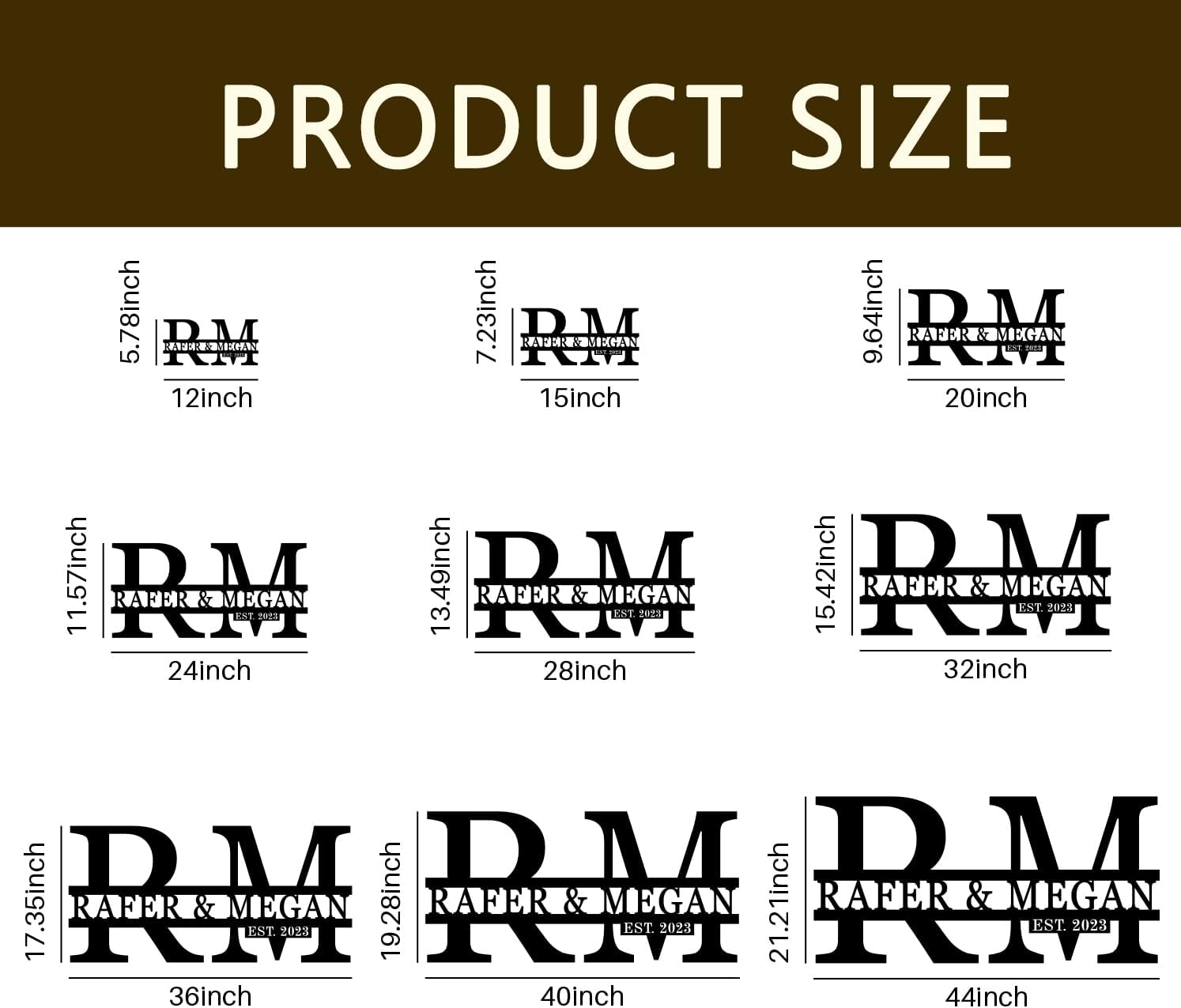 TNATUR Personalized Metal Sign - Custom Last Name Monogram - Split Letter - Family Door Hanger - Outdoor Wedding Gift - 12inch x 5.78inch Steel Sign