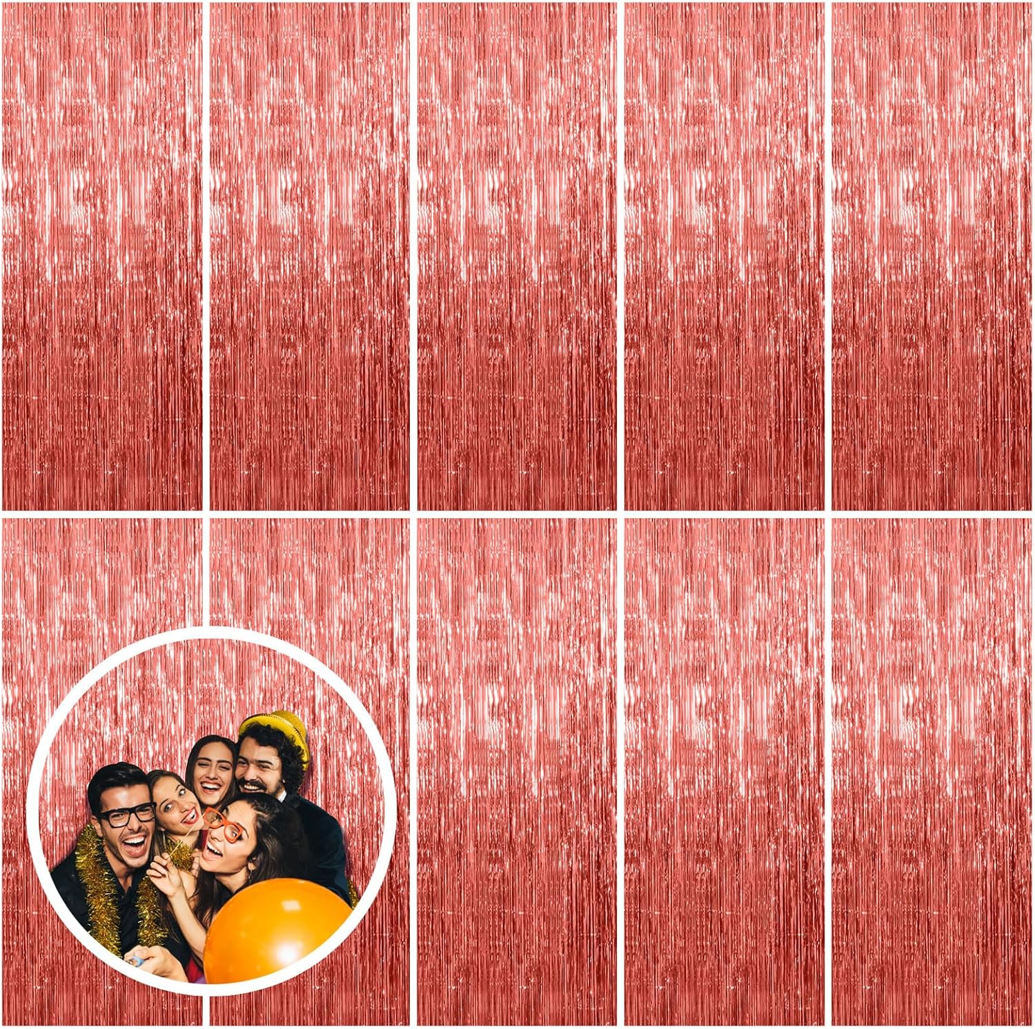 10 Pack Rose Gold Fringe Curtain Backdrop Birthday Bachelorette Party Decorations Metallic Tinsel Streamers Foil Backdrop Christmas Graduation Wedding New Year Party Decorations