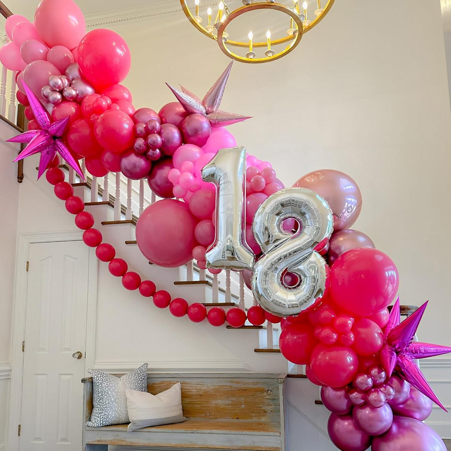 - Abundant Package: Includes total 90pack hot pink balloons: 2pcs 18inch, 30pcs 12inch, 25pcs 10inch, 33pcs 5inch and 3 sheet of adhesive dots, 2 rolls of ribbons. Designed for easy inflation and set up, Voircoloria dark pink balloons save you time and effort, so you can focus on enjoying your celebration without any hassle