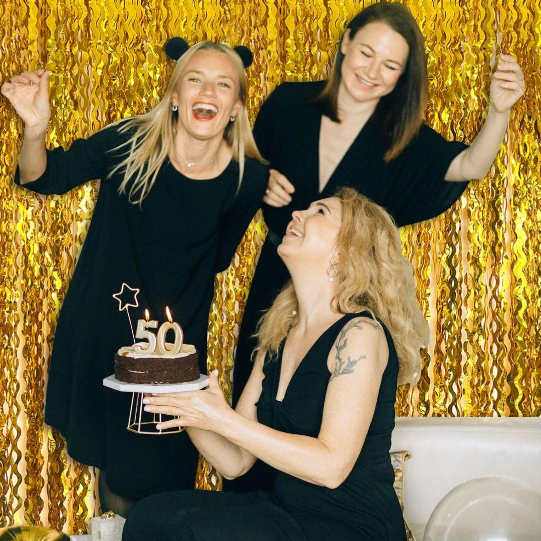Gold Backdrop Birthday Decorations Foil Curtain Backdrop Gold Streamers Dance Party Decorations Photo Booth Props for Bachelorette Decorations Christmas Halloween New Years Eve Party Supplies