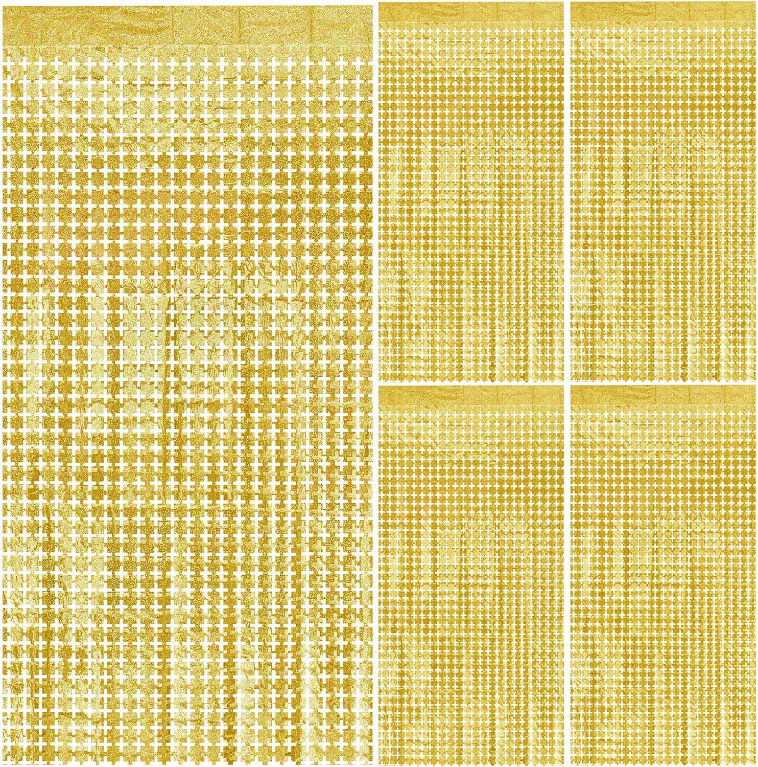 - Gold Streamers Party Decorations - You will get 5pcs 3.2 x 6.5 feet gold square shape laser foil fringe tinsel curtain. You can use to decorate party easily, door streamer. Sparkle and bling streamerswill definitely create a Shiny nice atmosphere for your party.