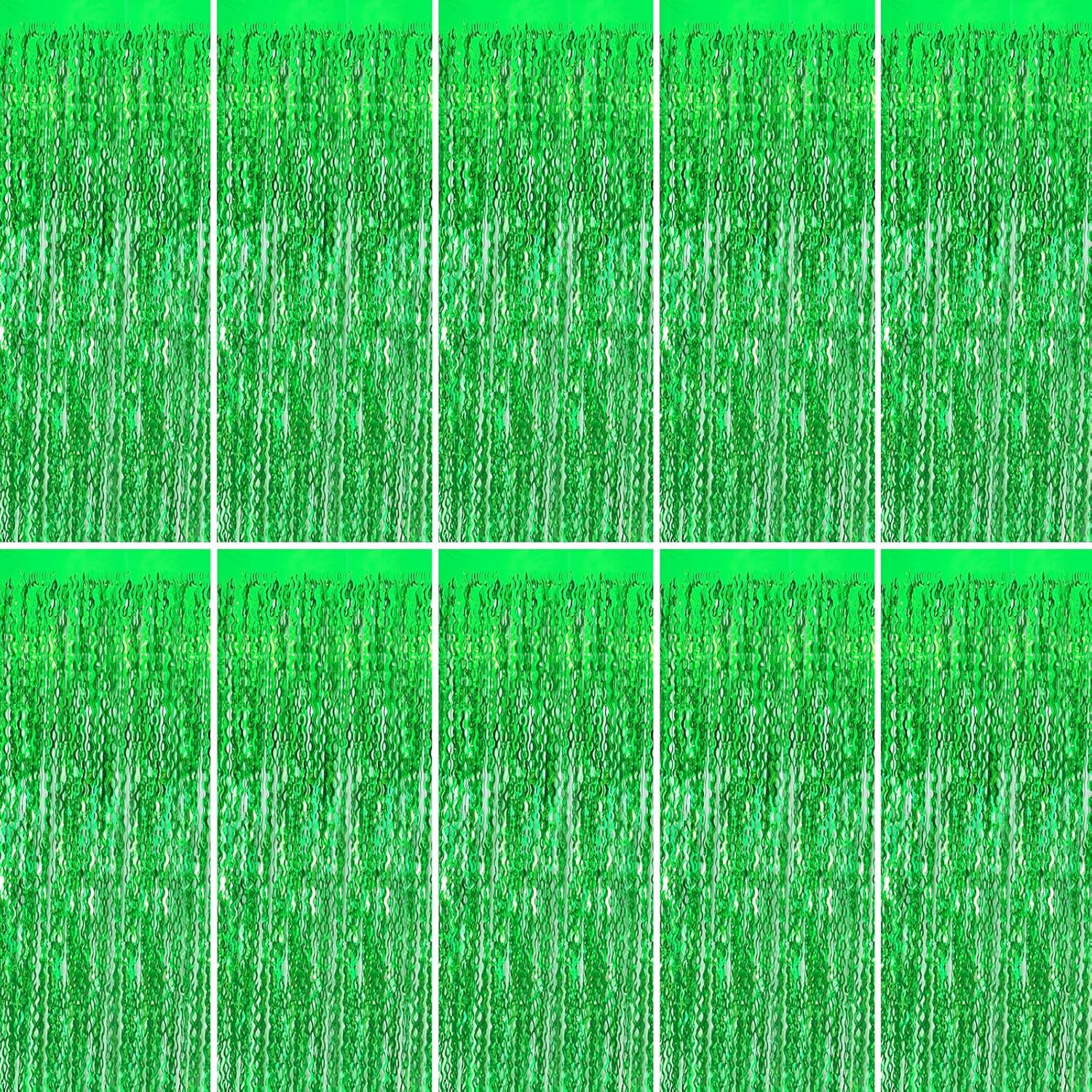 Green Foil Fringe Tinsel Curtain Backdrop, 10pcs Green Streamers Party Decorations for Birthday, Dinosaur Parties, Football Party, Jungle Theme, Easter,St Patricks Day, Door Hanging Decor