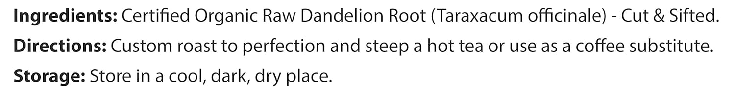 - IMPORTED FROM Bulgaria - This bag contains certified organic, cut and sifted dandelion root from Bulgaria.