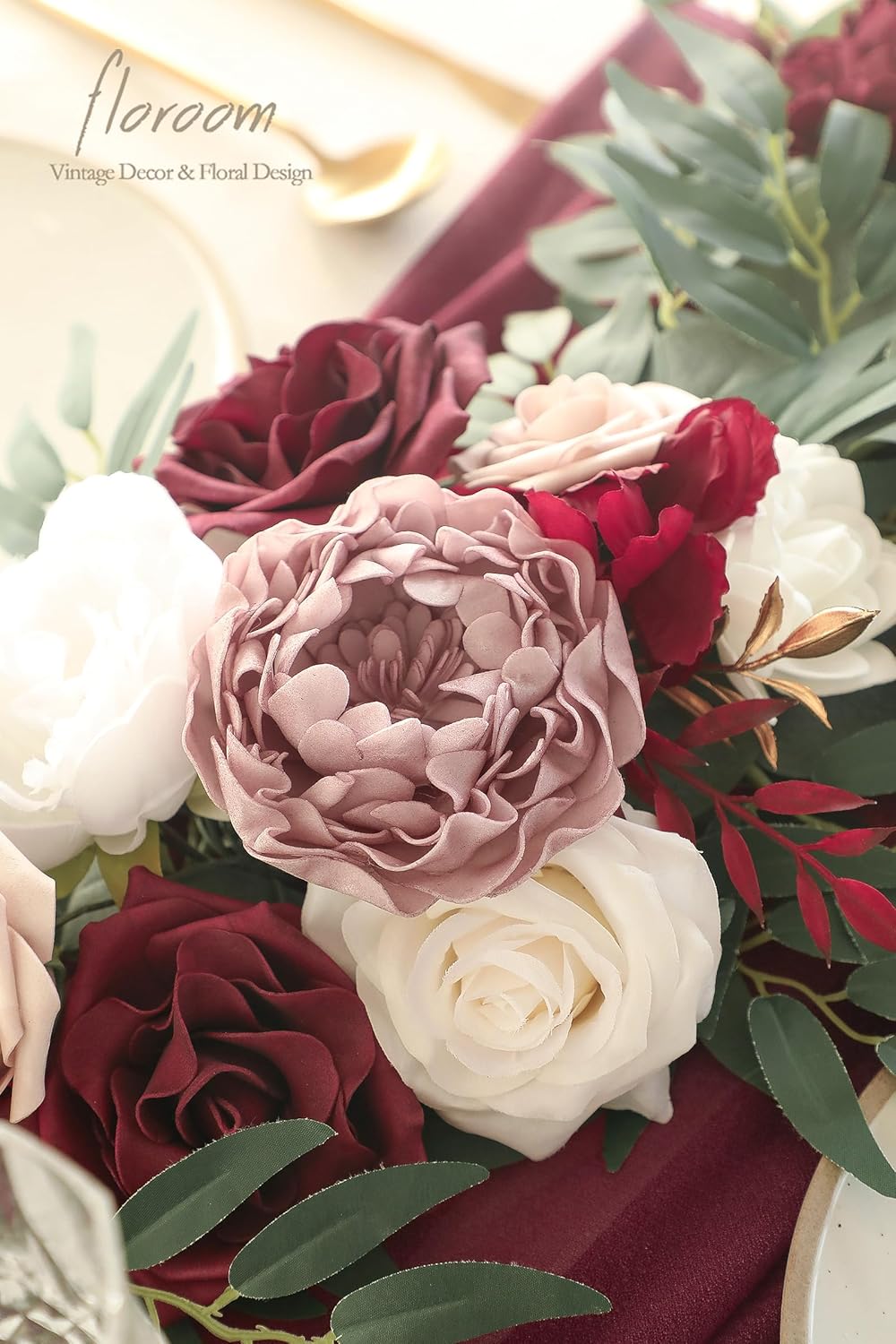 - ❤️Lifelike Greenery: Premium faux silk leaves, foam flowers in burgundy and white to match the rustic burgundy theme, with rose as the main flower, embellished with peony, eucalyptus, and willow leaves, create a layered and romantic sense.