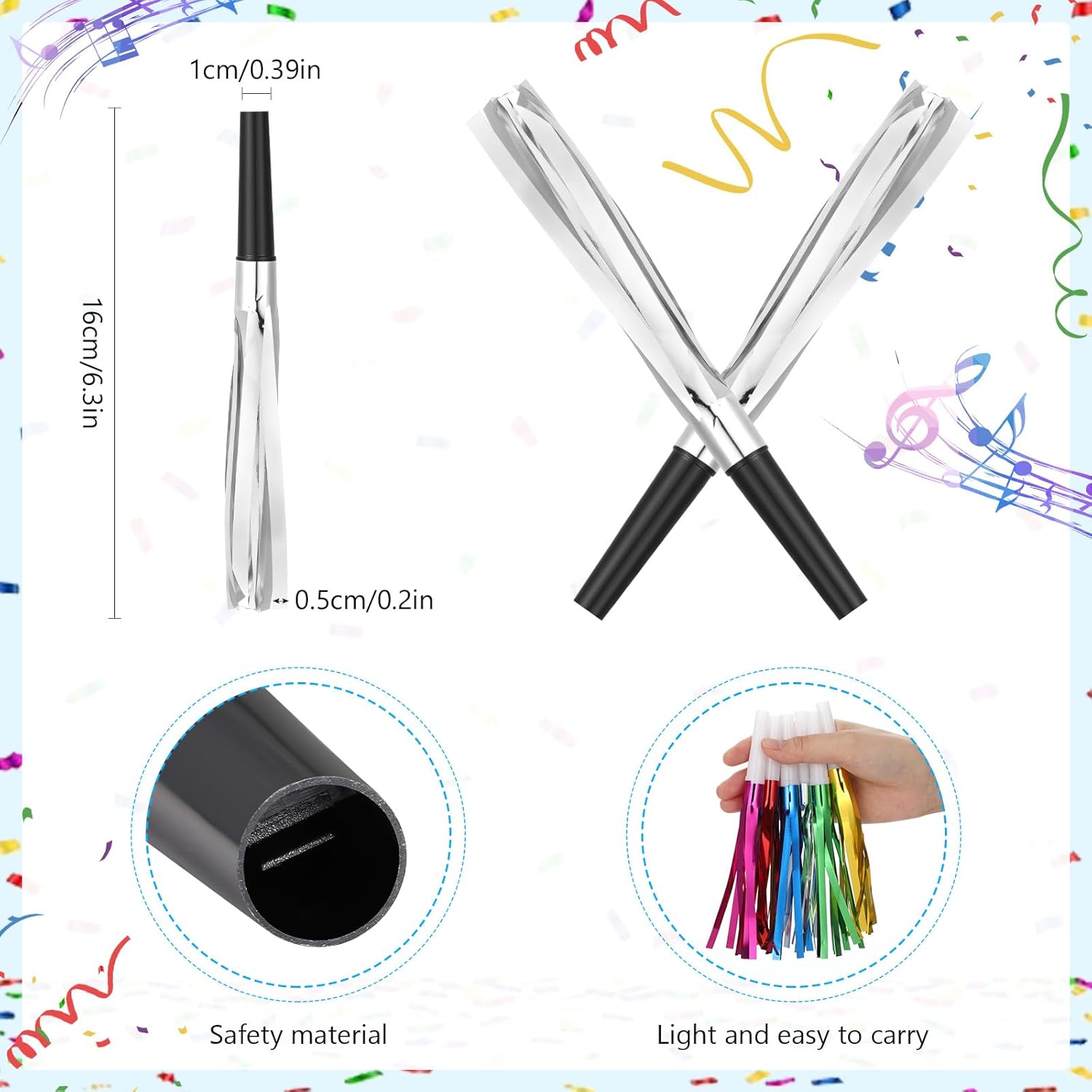 - Material: Glitter metallic fringed noise makers horns made of high-quality materials, safe, reliable and durable, not easy to break or fade, can be applied for a long time.