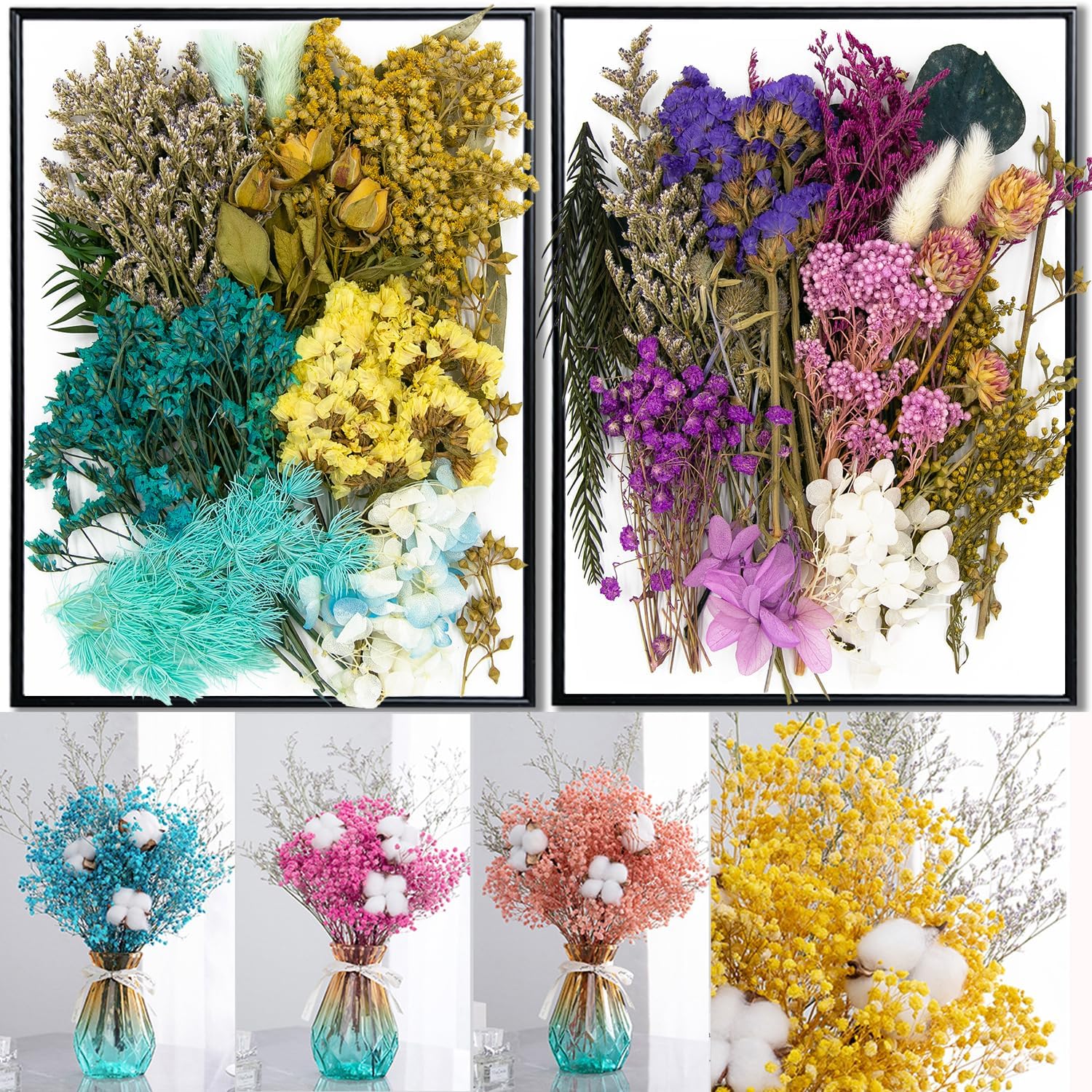 - Dried Pressed Flowers: Very Colorful real dried flower, shapes and colors of flowers well preserved. Can bring you a wonderful experience. Experience nature and purify your soul. Love nature, a gift from nature!