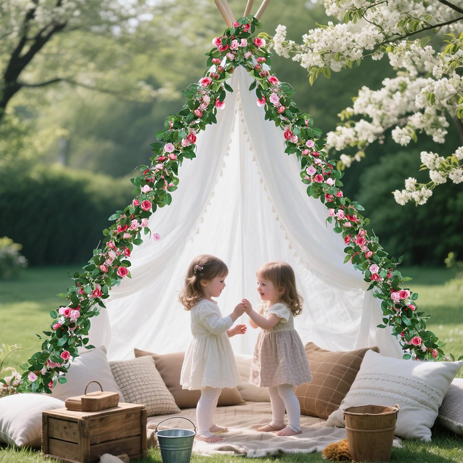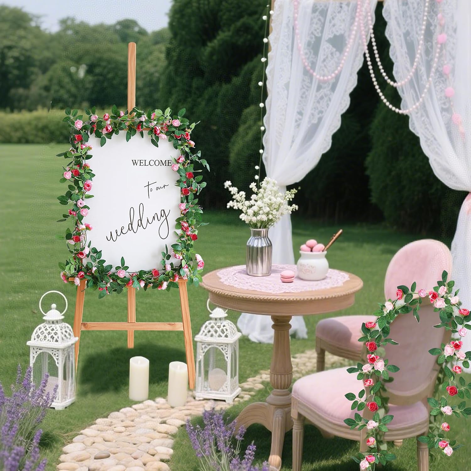 - 📏 【Lush, Full Design 180+ Flowers & 800+ Leaves】Each vine is densely packed with 45 flowers & 200+ leaves. The full set provides a luxurious, professional effect. Perfect for creating a dramatic impact on arches and backdrops.