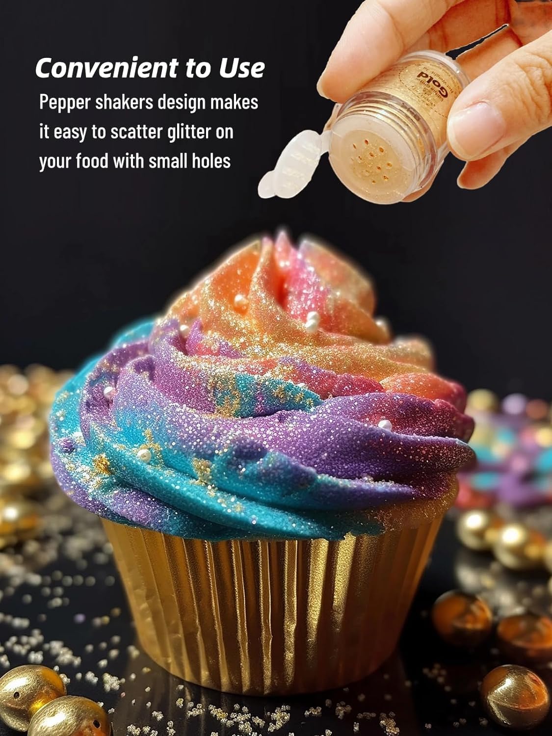 - 【Ideal Cake Decorating Supplies Glitter Dust and Multi Using】Edible prism powder is food-grade shimmer disco edible glitter is approved for both food and drink consumption,so is great to use for drinks, beverages, cocktails, and suitable for fondant, cakes pop , cookies, cupcakes, cake decorating, macaron, icing cream, and other gourmet baked goods, glossy glitter cake topper for desserts, metal finish, chocolate, strawberries, pull candy/isomaltose, etc.,
