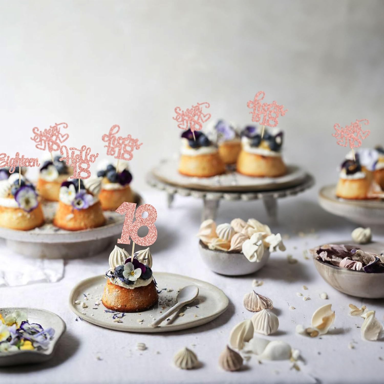 30Pcs18th Birthday Cupcake Toppers Eighteen Happy 18th Cupcake Picks Sweet 18 Cheers to 18 Cake Decorations for 18th Birthday Anniversary Party Supplies Rose Gold Glitter