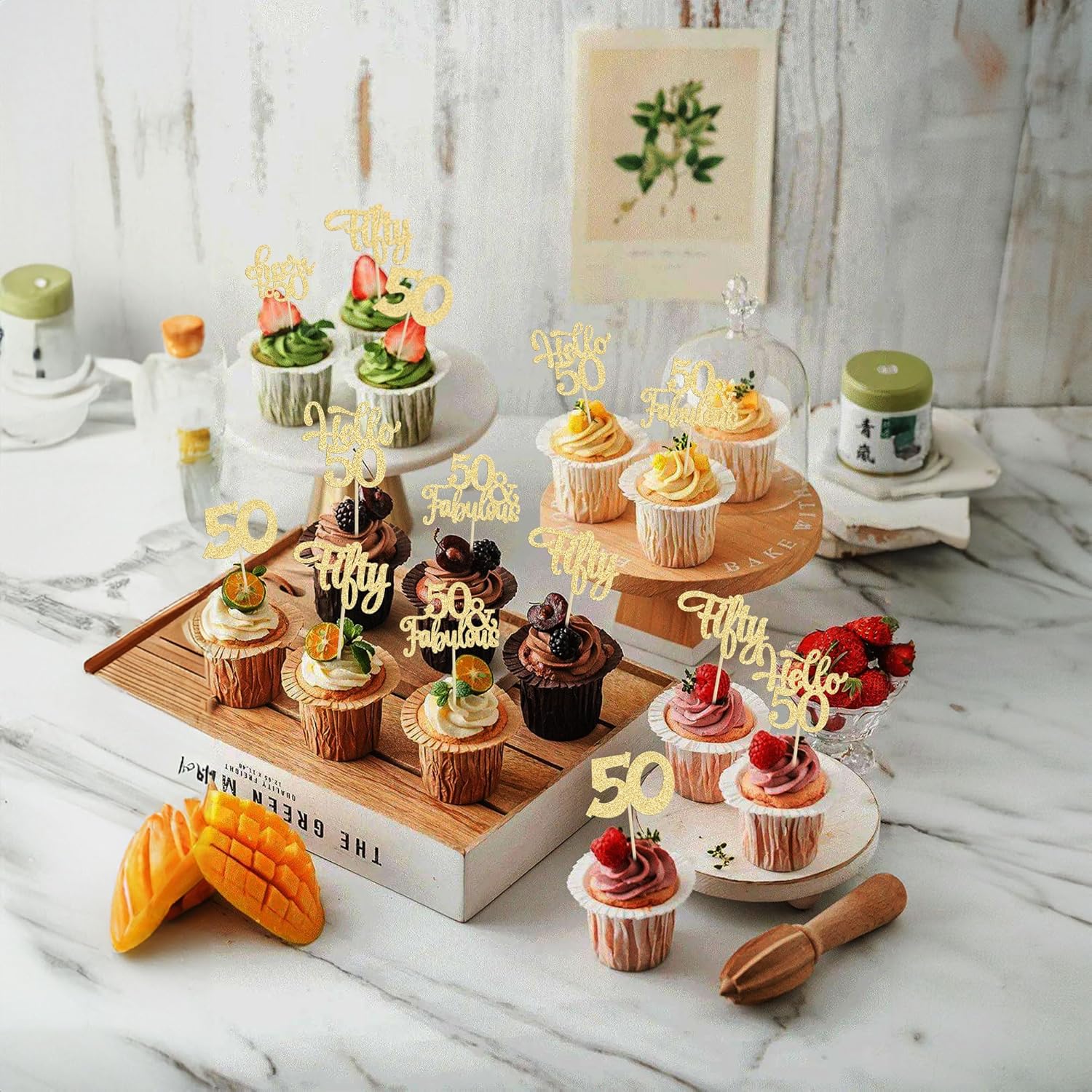 - -These Happy 50th Birthday Cupcake Toppers are so cute and good for happy 50th birthday theme party, cheers to 50 years theme party, 50 fabulous theme party, happy 50th birthday anniversary theme party cake decorations. They can make your cupcake more attractive and bring the fun to your party. You can also apply them for ice cream, fruits, cookies and other desserts.