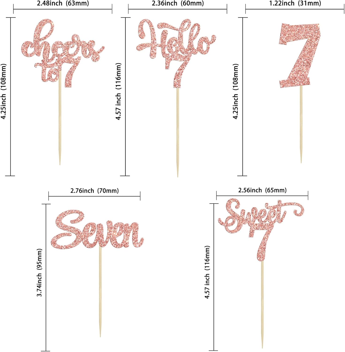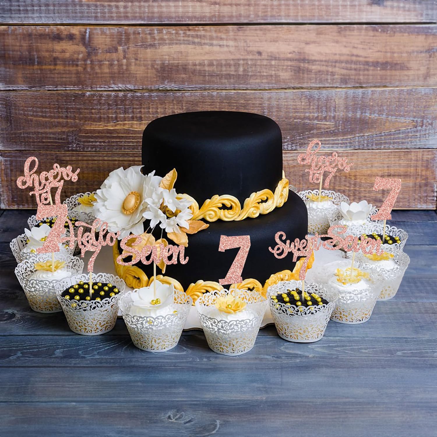 30Pcs 7th Birthday Cupcake Toppers Glitter Seven Happy 7 Cupcake Picks Cheers to 7 Years Old Cake Decorations for 7th Birthday Party Supplies Rose Gold