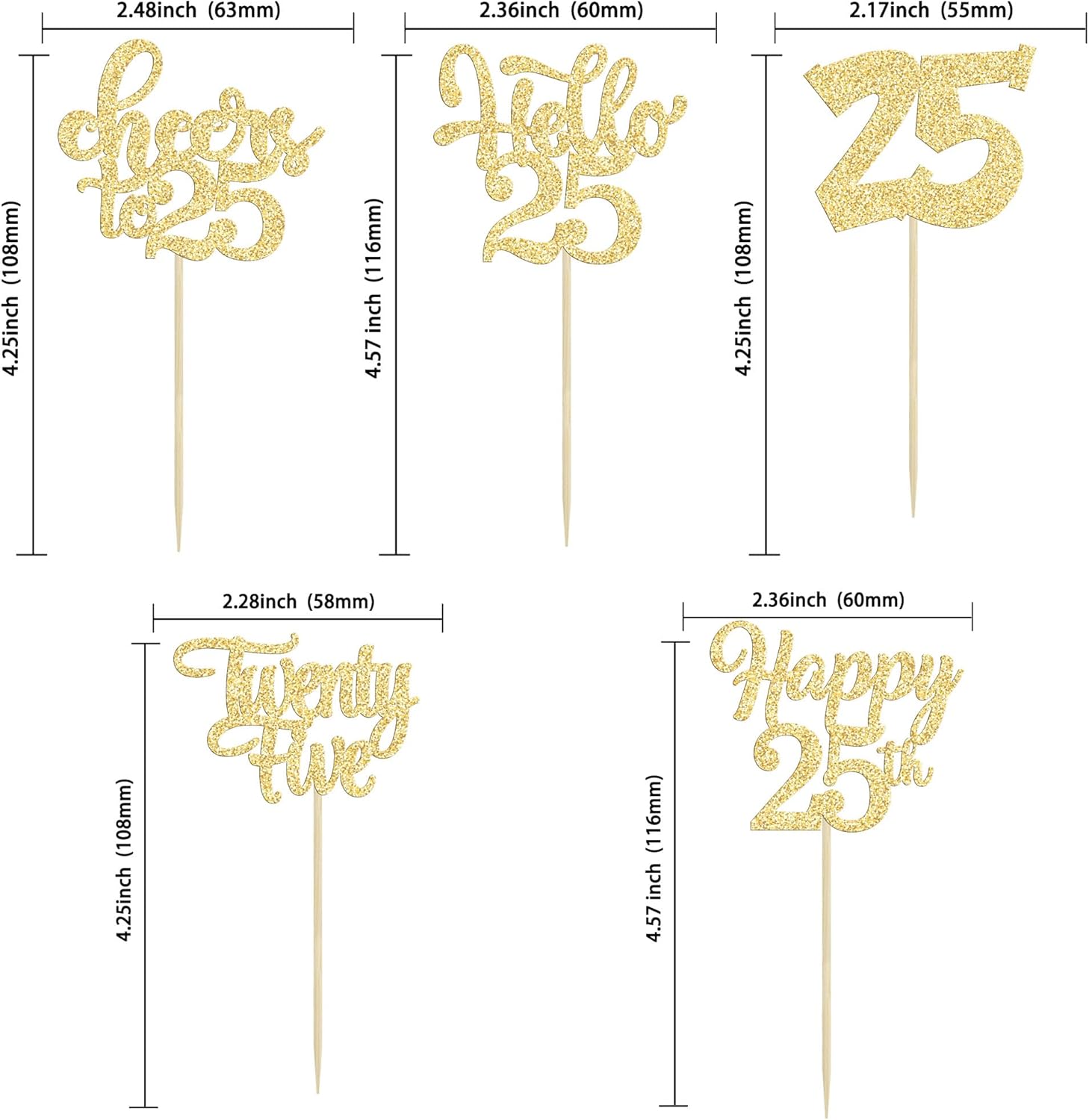 - -These Happy 25th Birthday Cupcake Toppers are so cute and good for happy 25th birthday theme party, cheers to 25 years theme party, 25 fabulous theme party, happy 25th birthday anniversary theme party cake decorations. They can make your cupcake more attractive and bring the fun to your party. You can also apply them for ice cream, fruits, cookies and other desserts.