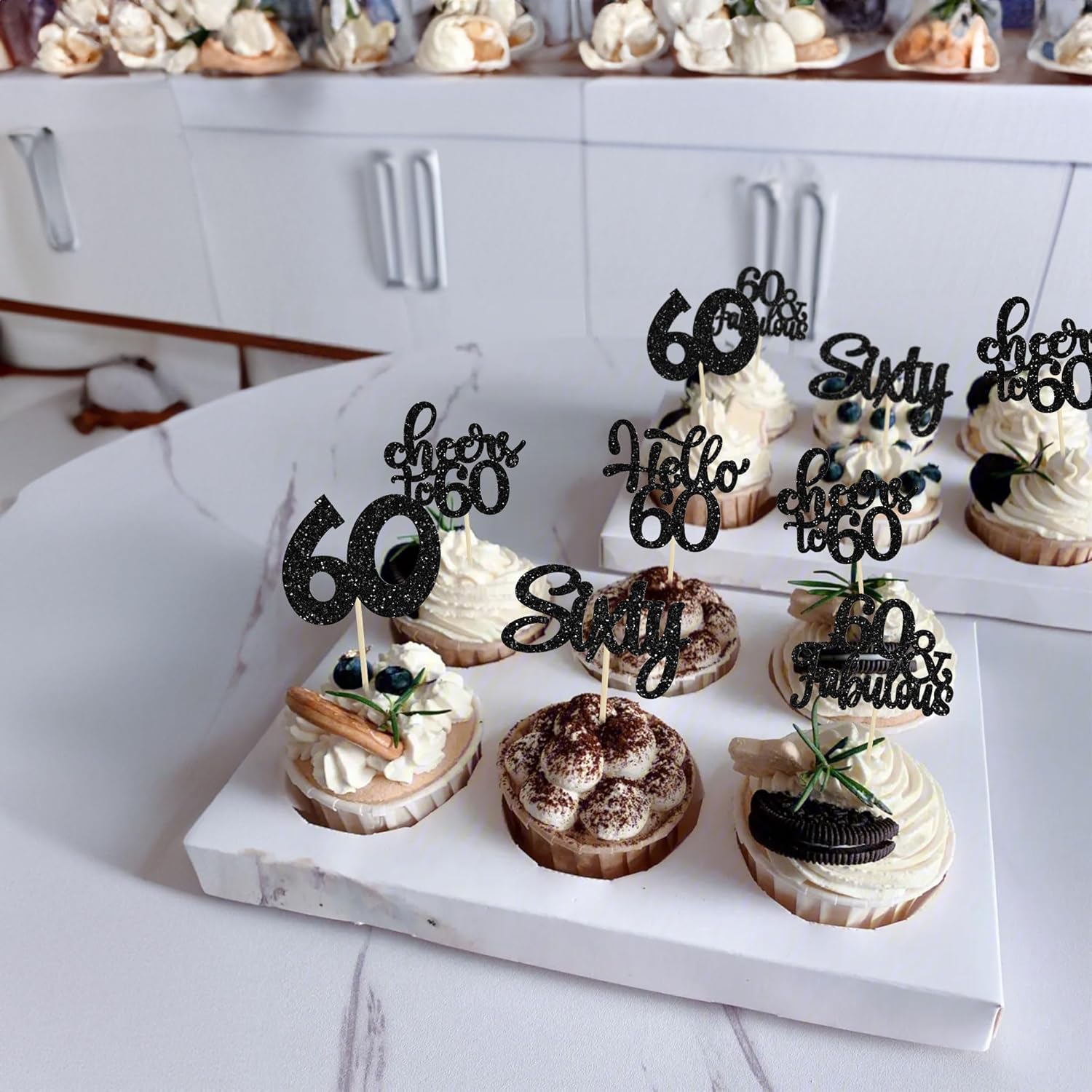 - -These Happy 60th Birthday Cupcake Toppers are so cute and good for happy 60th birthday theme party, cheers to 60 years theme party, 60 fabulous theme party, happy 60th birthday anniversary theme party cake decorations. They can make your cupcake more attractive and bring the fun to your party. You can also apply them for ice cream, fruits, cookies and other desserts.