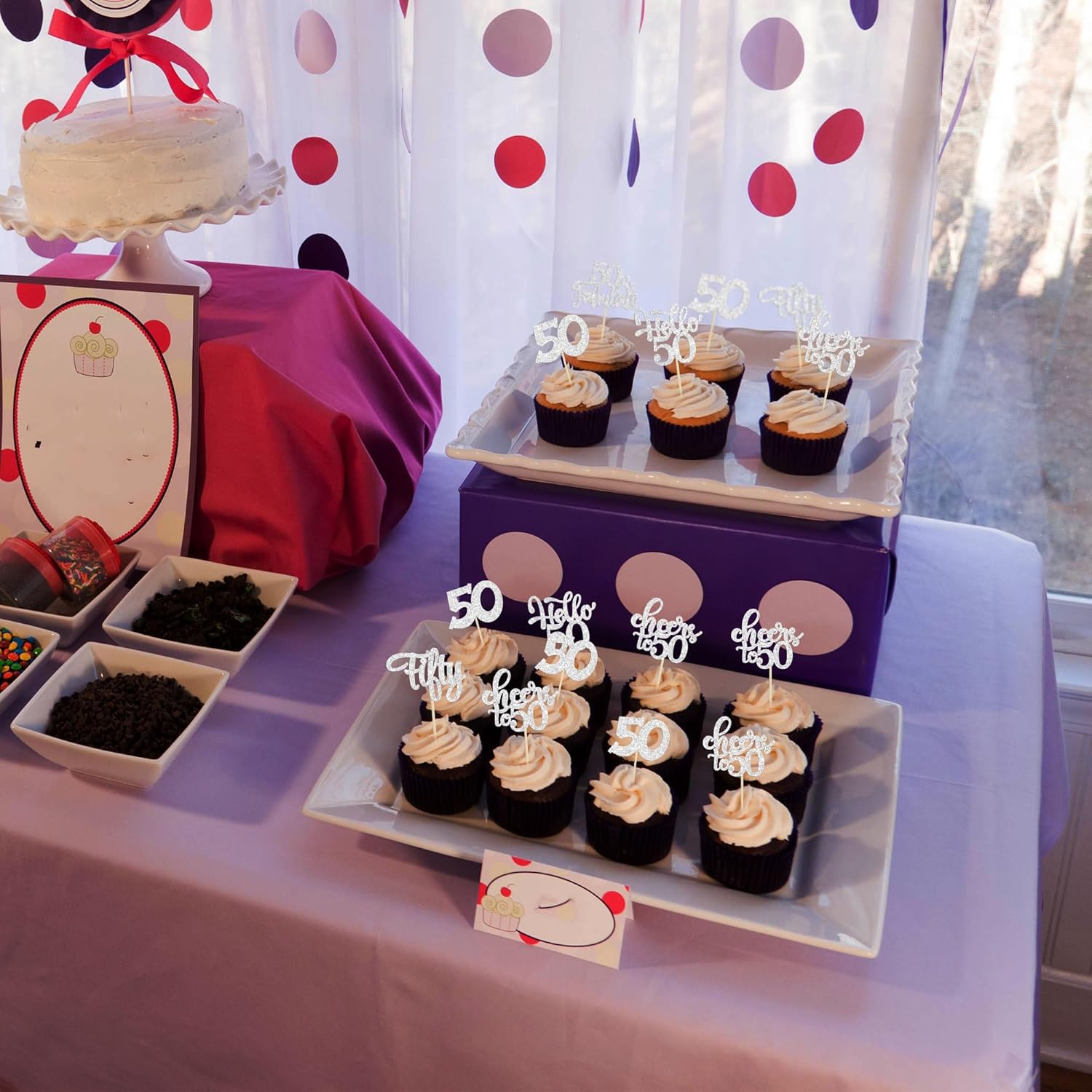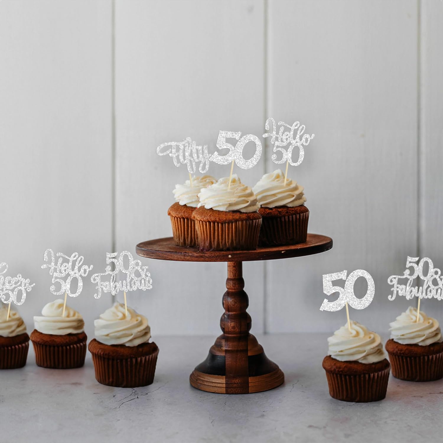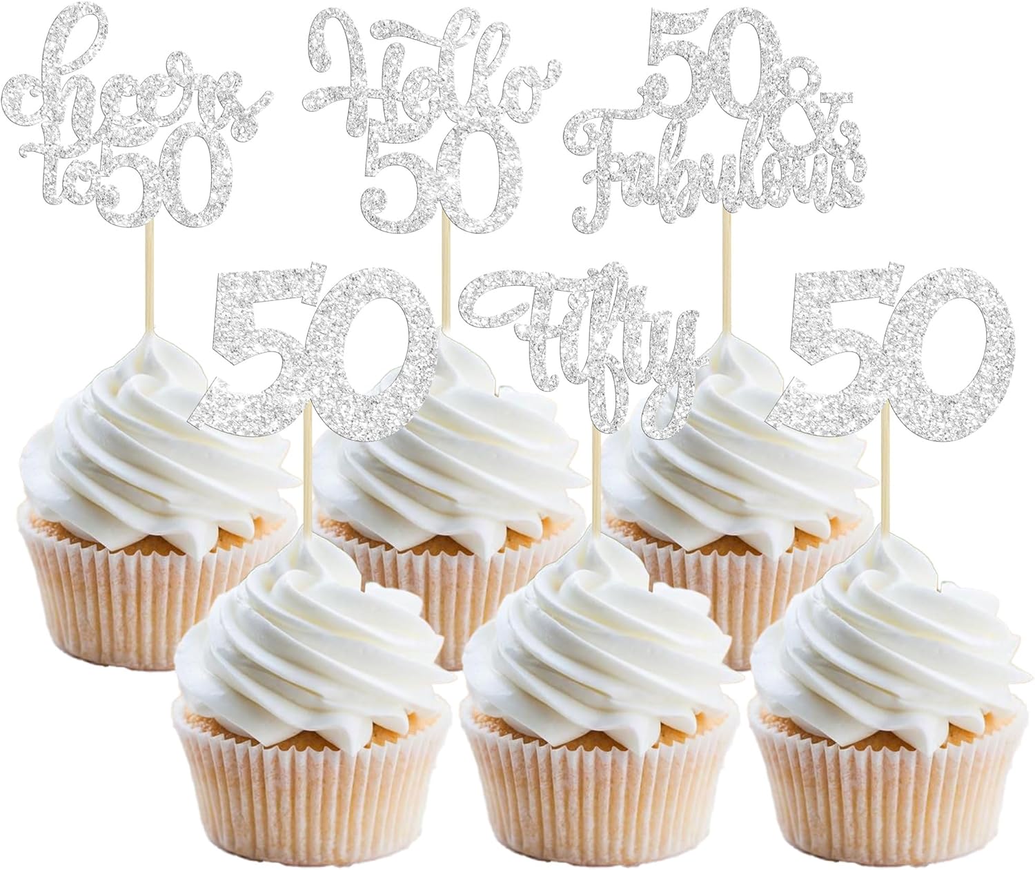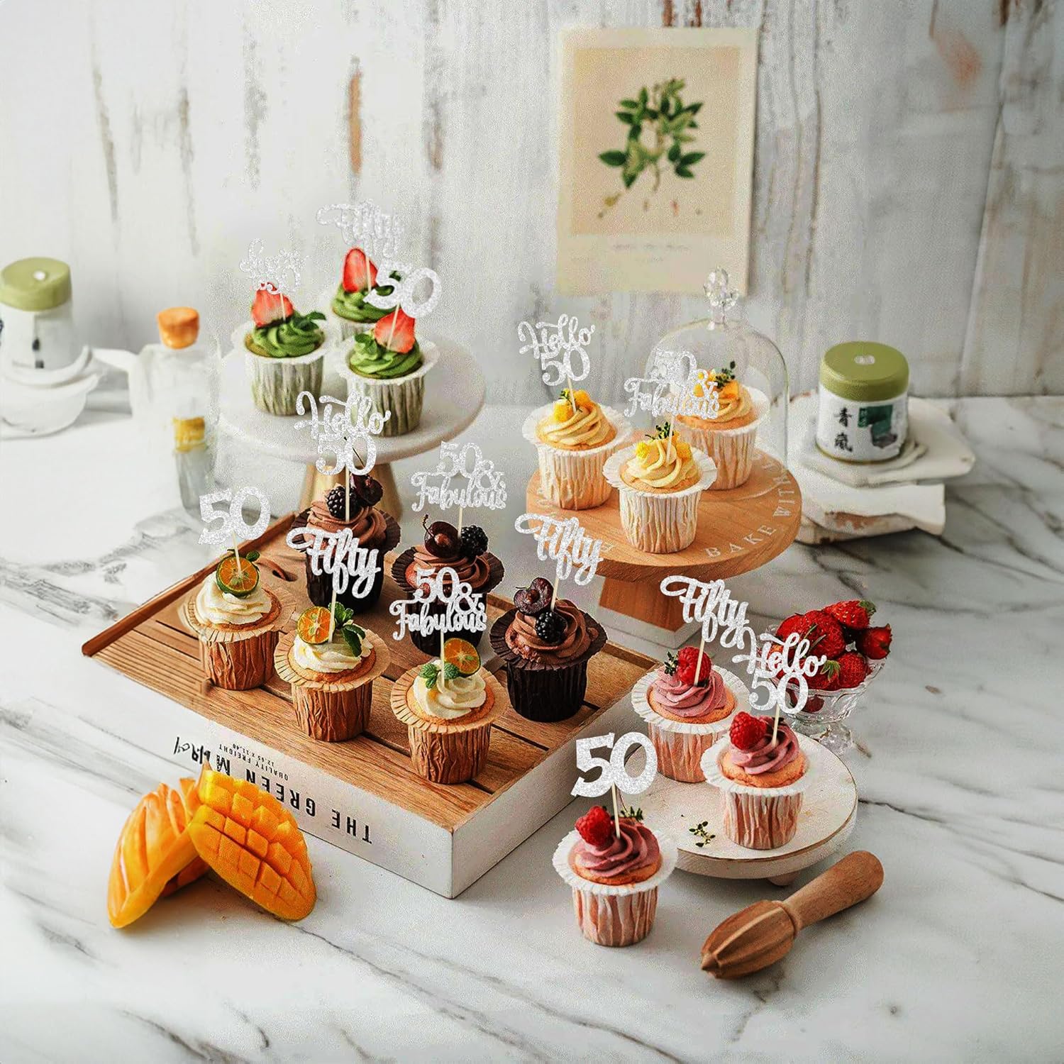 - -These Happy 50th Birthday Cupcake Toppers are so cute and good for happy 50th birthday theme party, cheers to 50 years theme party, 50 fabulous theme party, happy 50th birthday anniversary theme party cake decorations. They can make your cupcake more attractive and bring the fun to your party. You can also apply them for ice cream, fruits, cookies and other desserts.