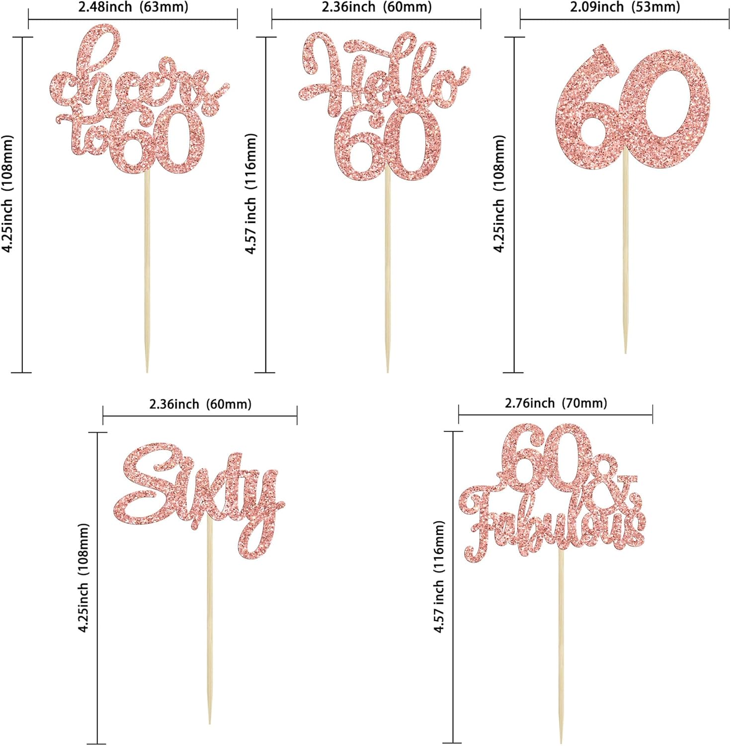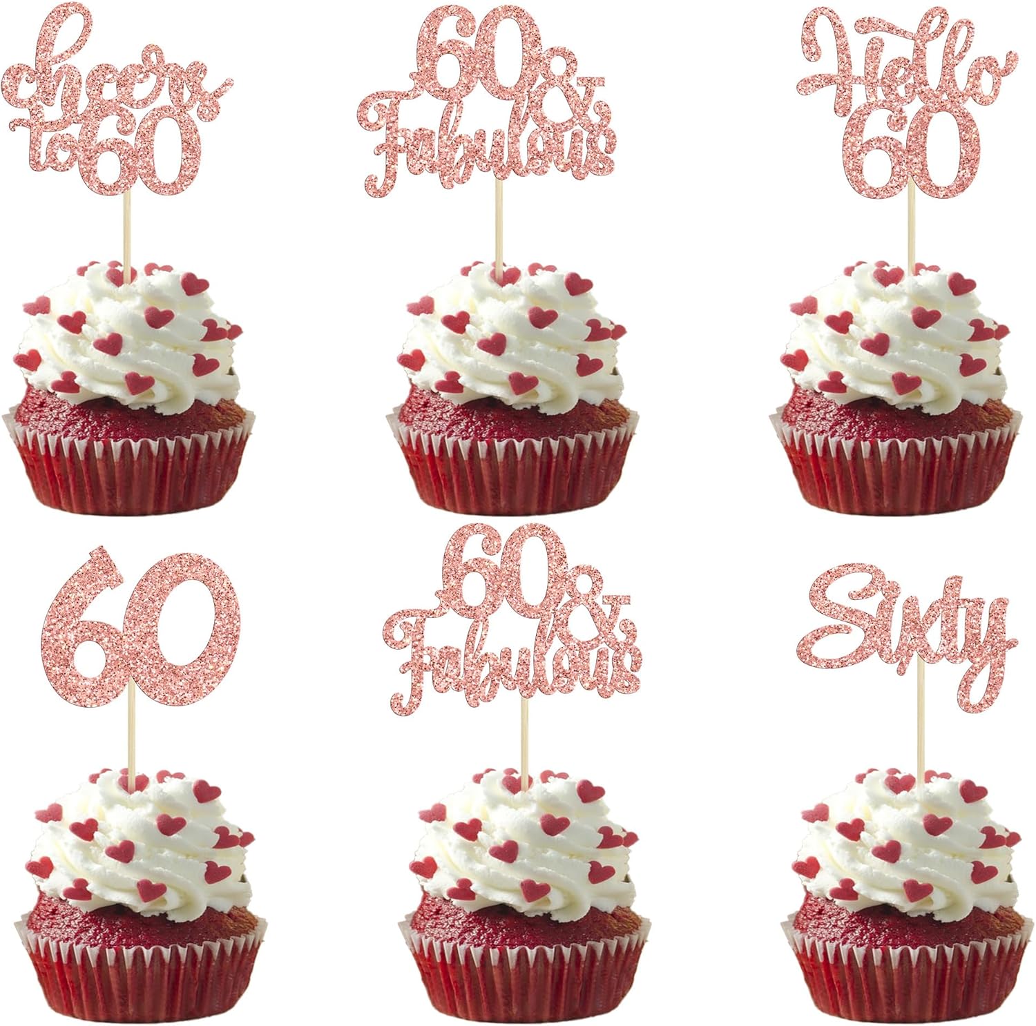 30Pcs 6th Birthday Cupcake Toppers Glitter Six Hello 6 Cupcake Picks Cheers to 6 Years Old Cake Decorations for 6th Birthday Party Supplies Rose Gold