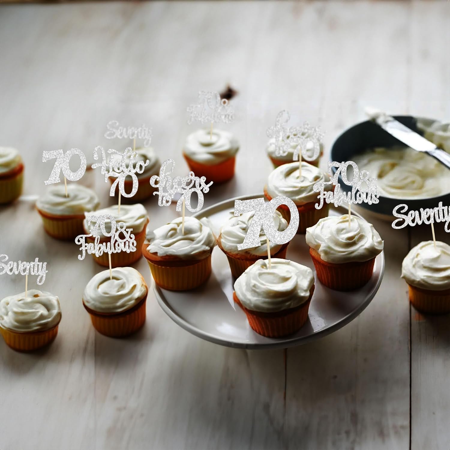 - -These Happy 70th Birthday Cupcake Toppers are so cute and good for happy 70th birthday theme party, cheers to 70 years theme party, 70 fabulous theme party, happy 70th birthday anniversary theme party cake decorations. They can make your cupcake more attractive and bring the fun to your party. You can also apply them for ice cream, fruits, cookies and other desserts.