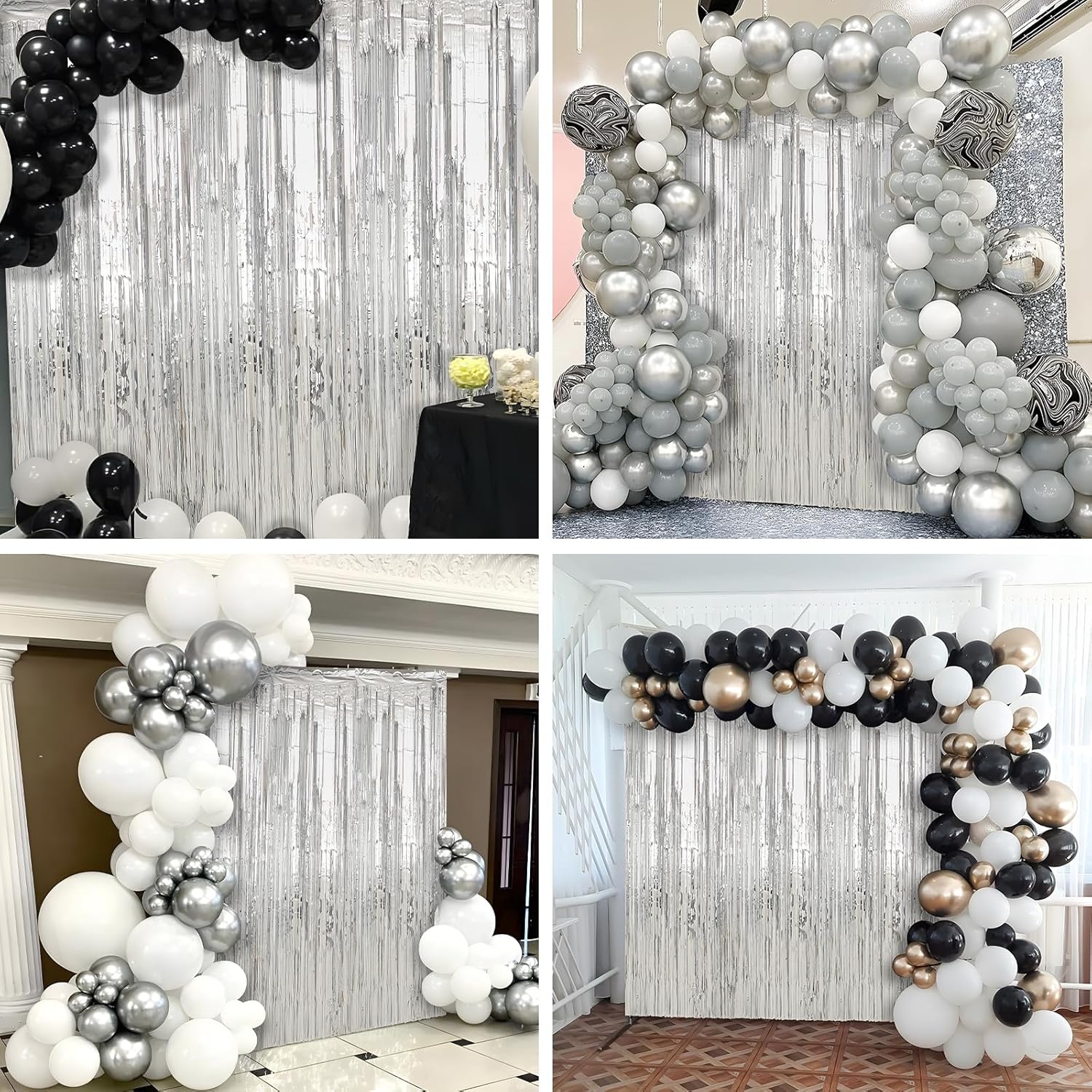 2 Pack Silver Foil Fringe Curtains Streamers Party Decorations 3.3 x 8.2 ft, Tinsel Curtain Fringe Backdrop for Parties, Silver Door Fringe Birthday Streamers, Photo Booth Backdrops, Party Decor