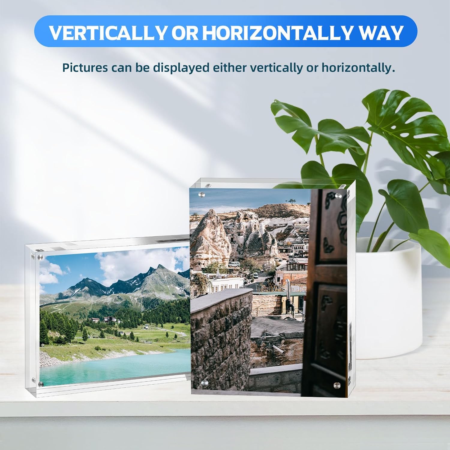 - 【Premium Quality】Crafted from high-density acrylic panels, this premium photo frame ensures protection against fading from sunlight or fluorescent illumination. Comprising two robust acrylic blocks secured by four corner magnets, the clear frame guarantees stability in both landscape and portrait orientations, keeping your picture securely in place.