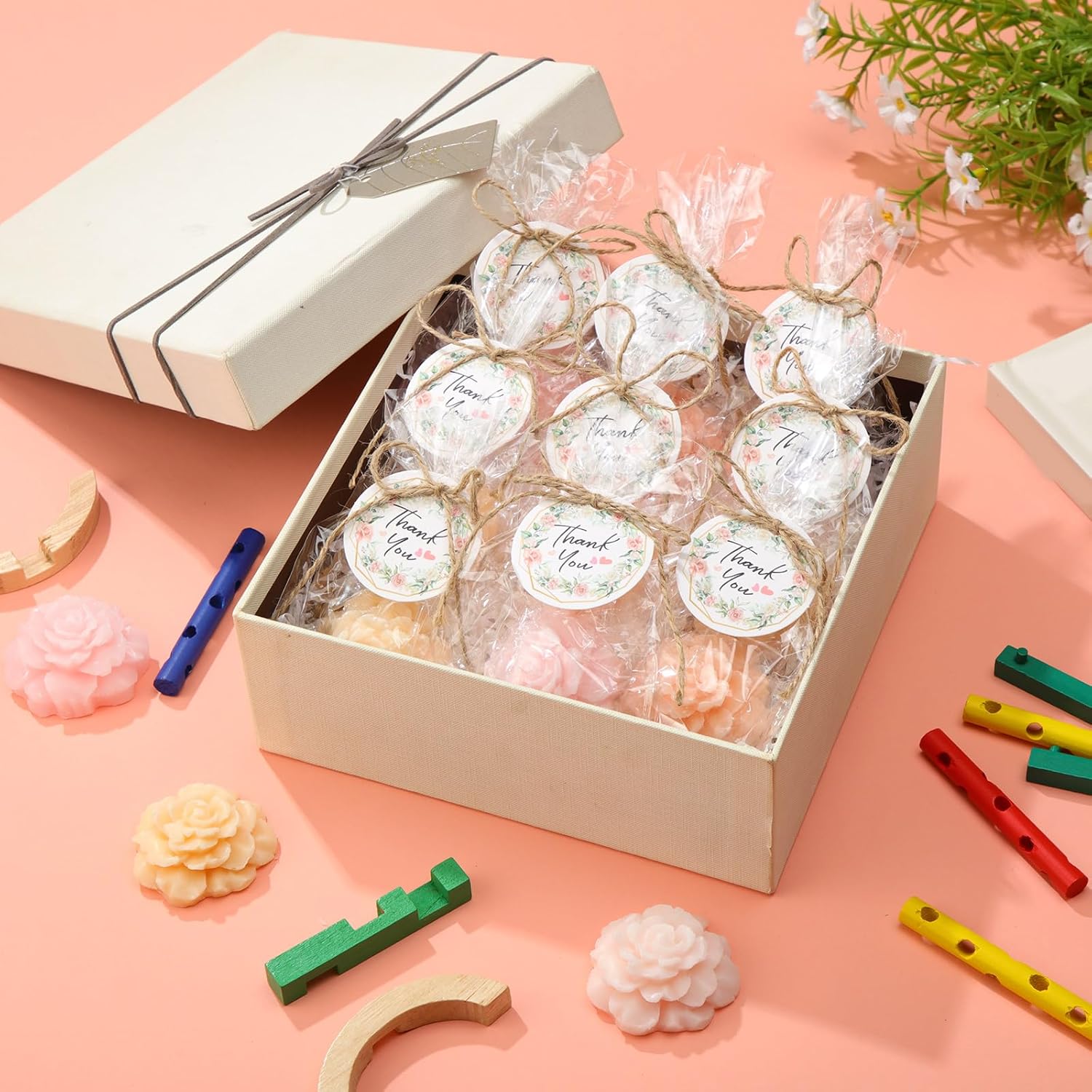 Demissle 20 Set Flower Mini Soaps for Guests Rose Soap Baby Shower Soap Favors with Thank You Tags for Wedding Bridal Guest Gift Party Favor(Light Pink)