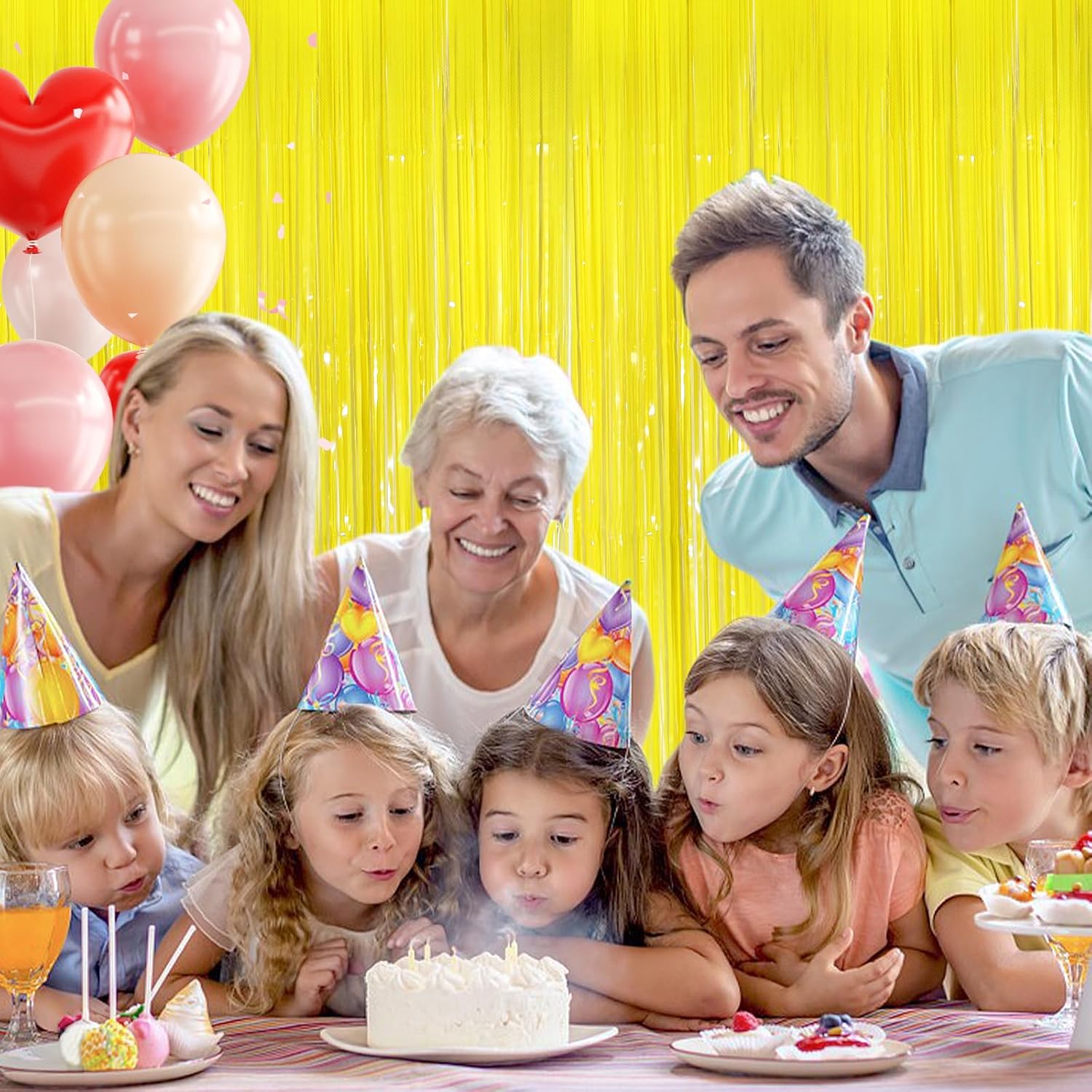 Macaron Yellow Metallic Tinsel Foil Fringe Curtains, 2Pack 3.3x8.3 Feet Streamer Backdrop Curtains for Birthday Wedding Party Decorations, Halloween Decor, Foil Curtain Backdrop for Bachelorette Party