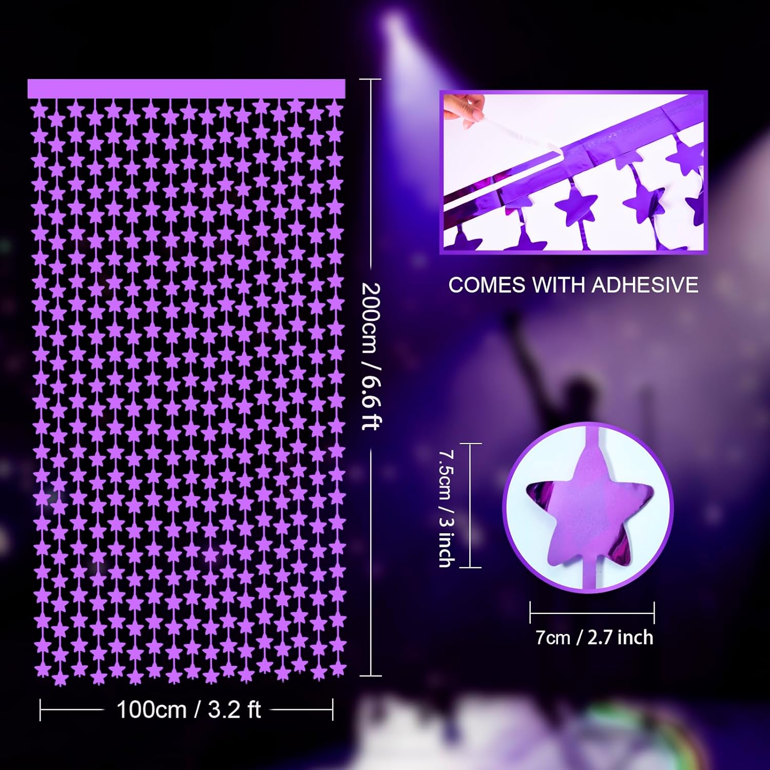 - 💜【 Let's Make Your Party Sparkle! 】: Our 2 pack Purple stars foil fringe curtains, Large size (width x drop) 3.3 x 6.6 ft each, perfect photo backdrop for various parties.