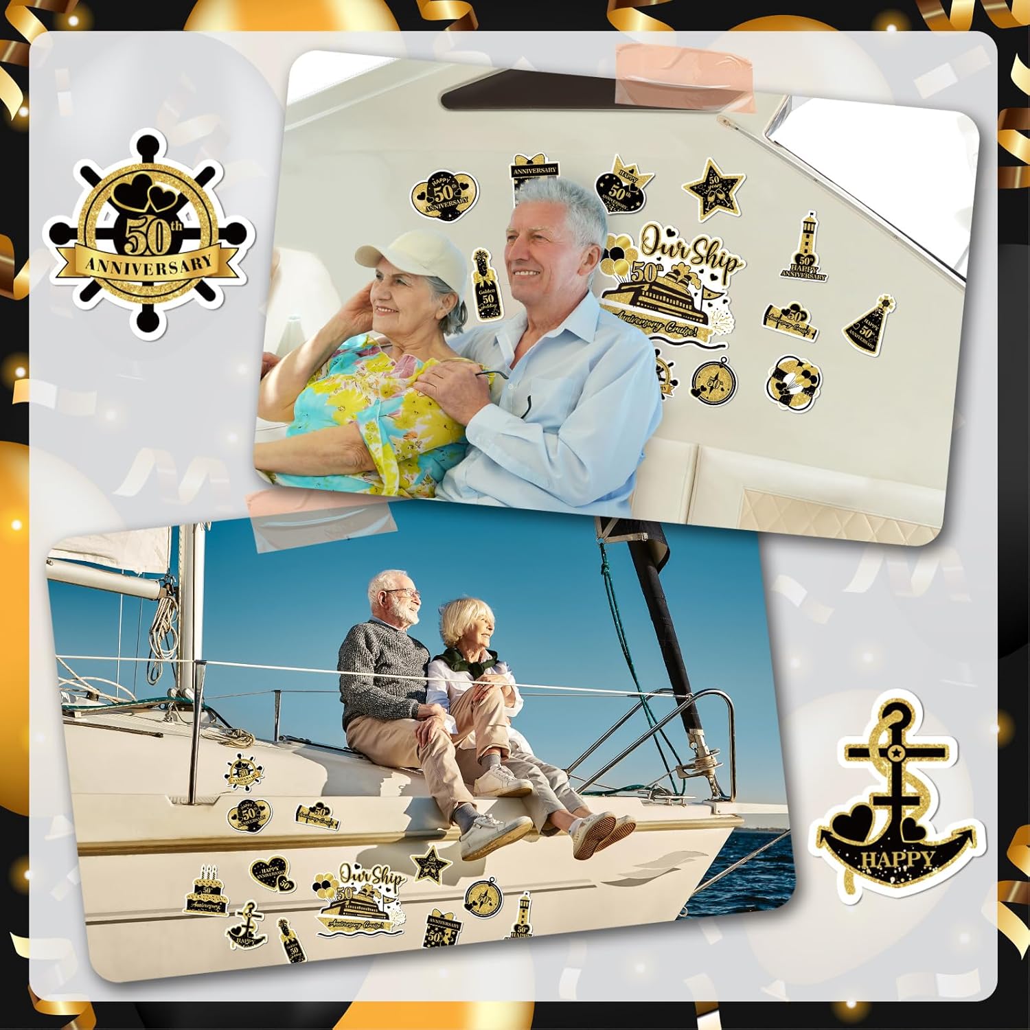 - 💌Cruise Door Magnets Decorations:You will get 16pcs of Gold Black 50th Anniversary Cruise Door Magnets.These 50th Anniversary Cruise Door Magnets have "50th Anniversary Cruise" and many shapes.With these beautiful 50th anniversary magnets decorations, they further set off a atmosphere of 50th anniversary.