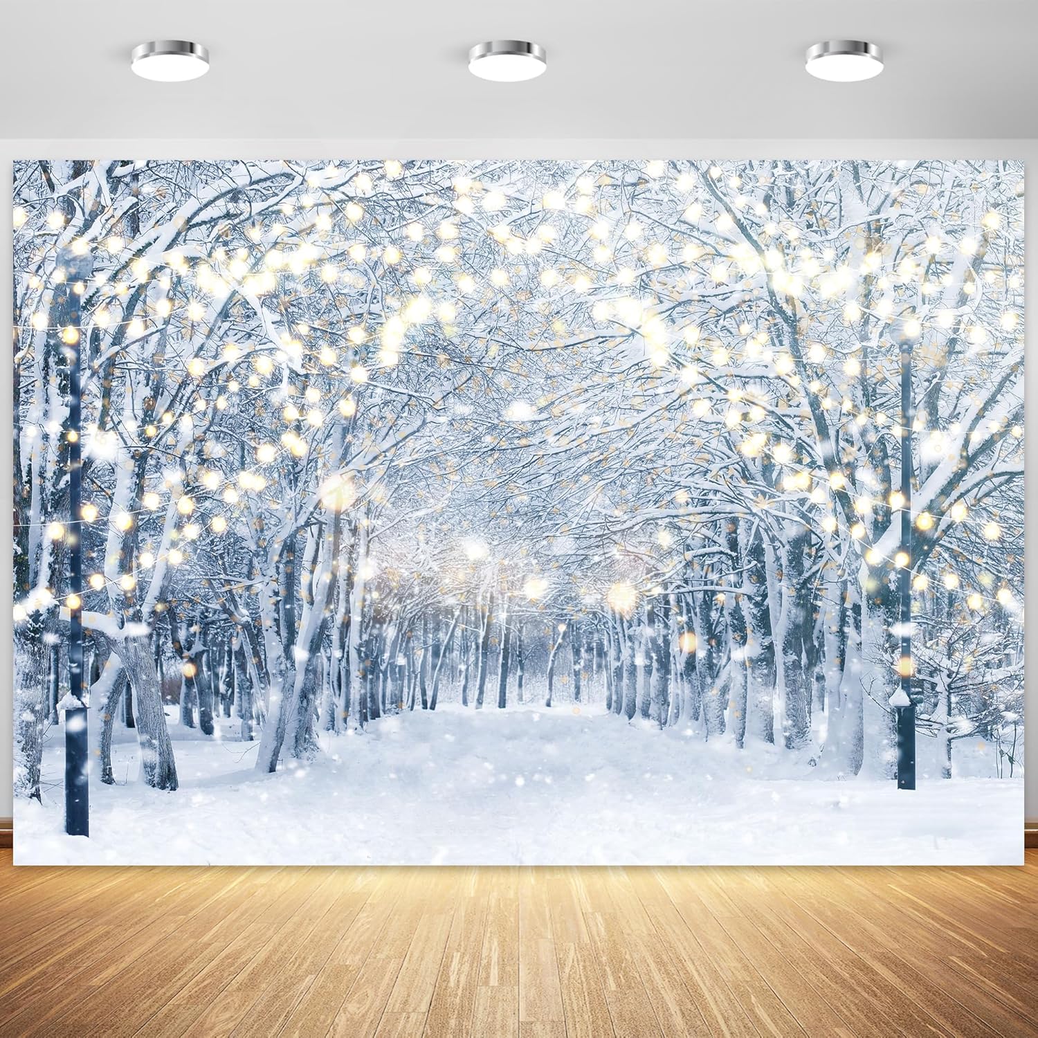 7x5FT Winter Snowy Scene Photography Backdrop Wonderland Snowflake Tree Snow Background Bokeh Glitter White Snow Forest Landscape Party Photo Booth Studio Props