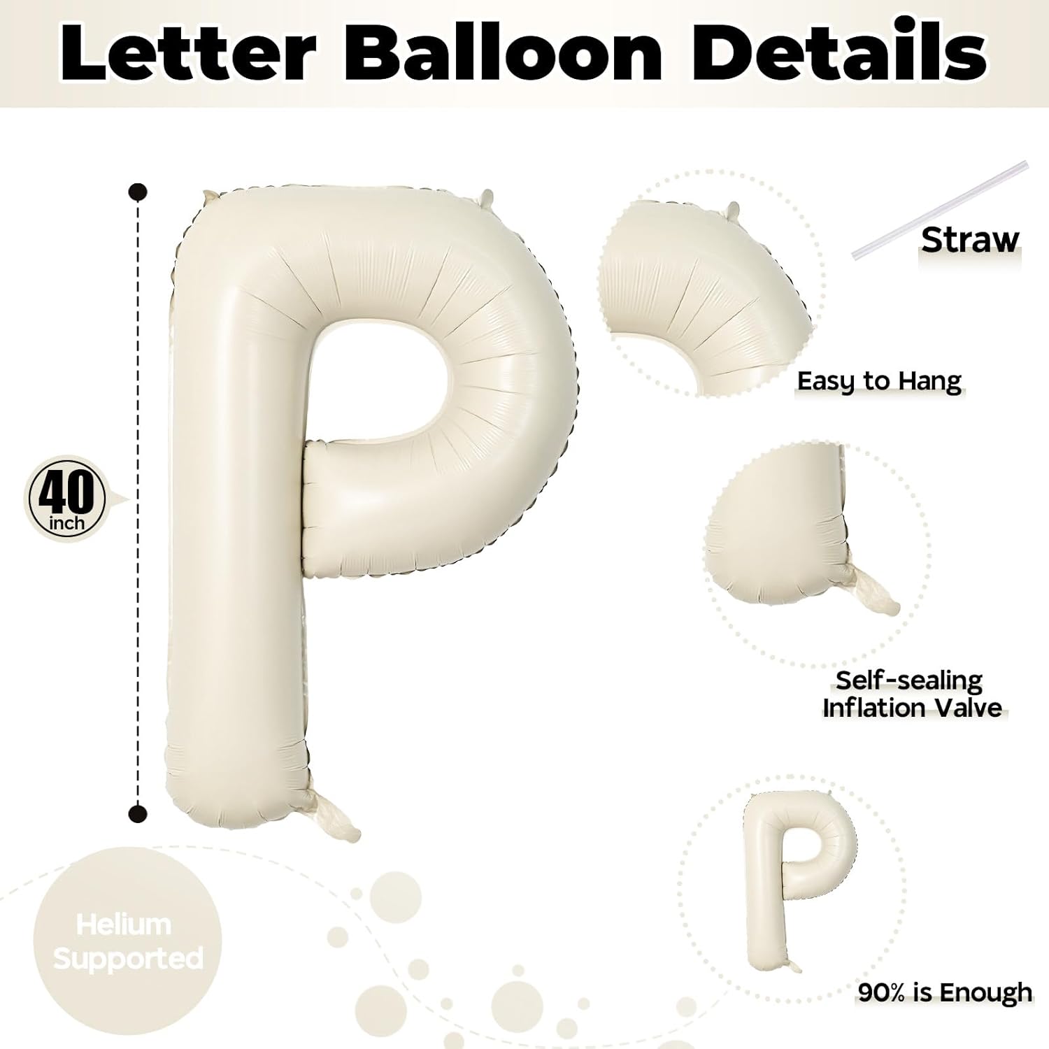 - 🎈 What You Get: Our product package includes 1pcs 40 inch "P" letter foil cream white balloon and 1pcs convenient straw for inflate. You can choose any big letter balloons to combine and customize the word you want to form. Make your party more unique and meaningful.