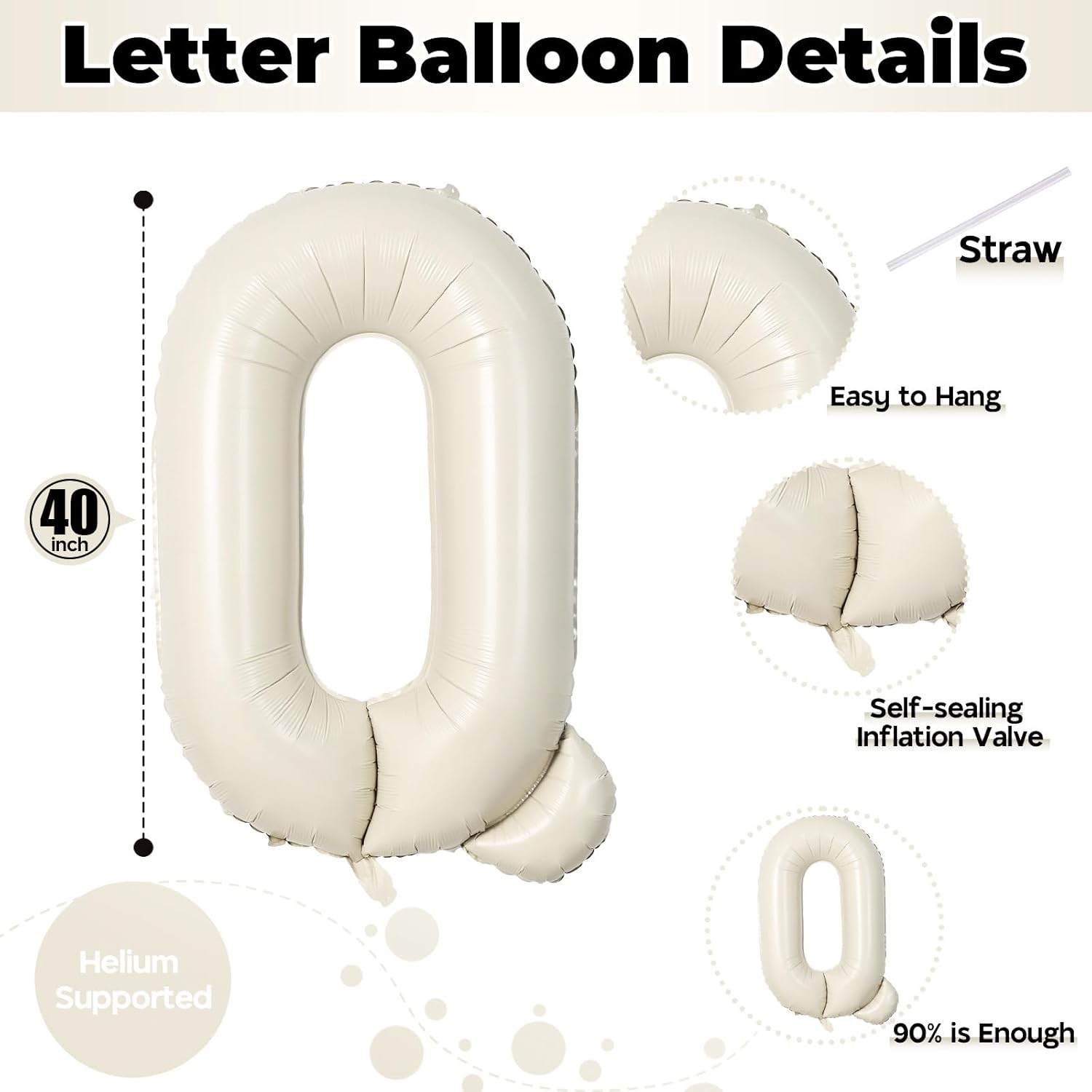 - 🎈 What You Get: Our product package includes 1pcs 40 inch "Q" letter foil cream white balloon and 1pcs convenient straw for inflate. You can choose any big letter balloons to combine and customize the word you want to form. Make your party more unique and meaningful.