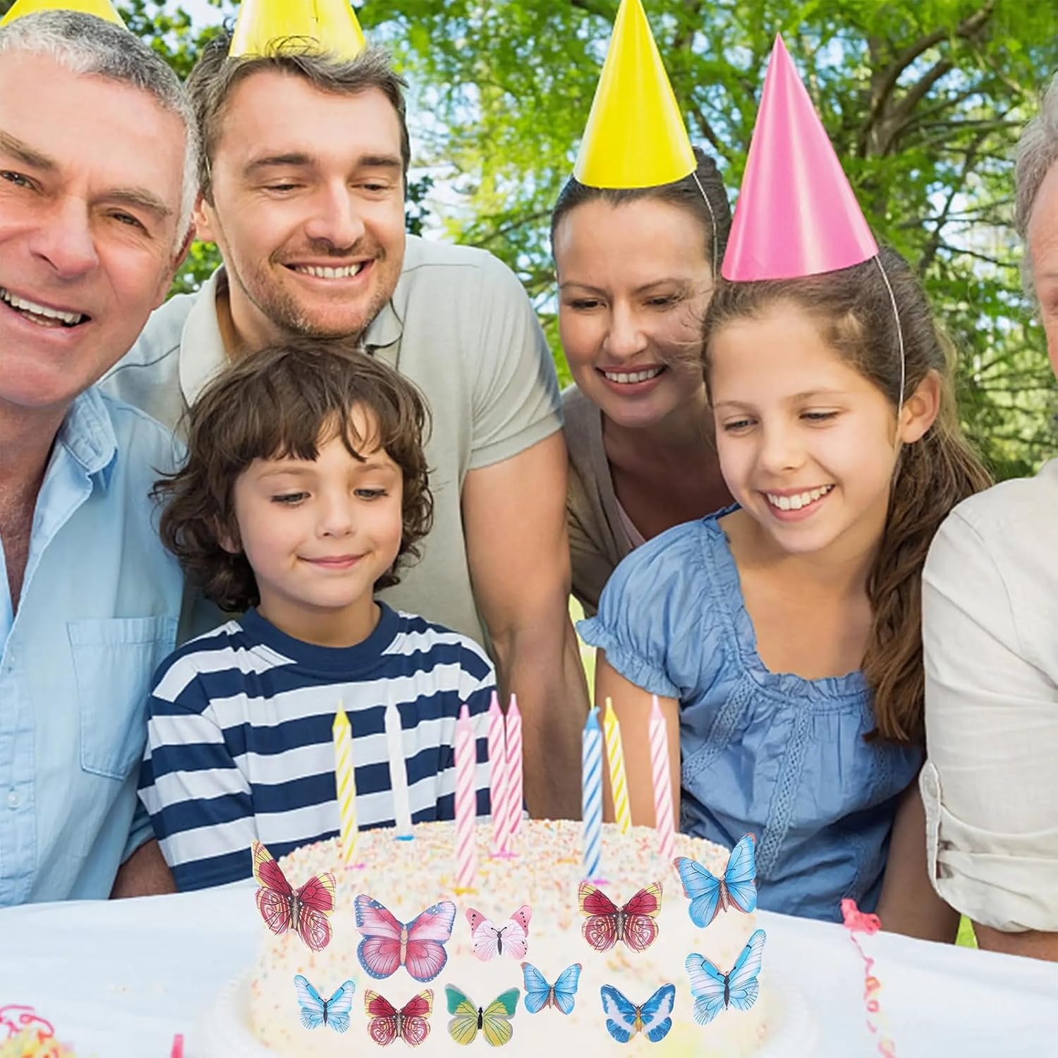 - Butterfly cake toppers gently fold can be a butterfly has a 3D effect, Perfect for your cake or cupcake decoration. Such as Christmas, wedding, kids boys girls birthday, baby shower anniversary, engagement, new baby, any spring summer butterfly princess themed party.Guaranteed to make the party a hit as a cake topper of favor