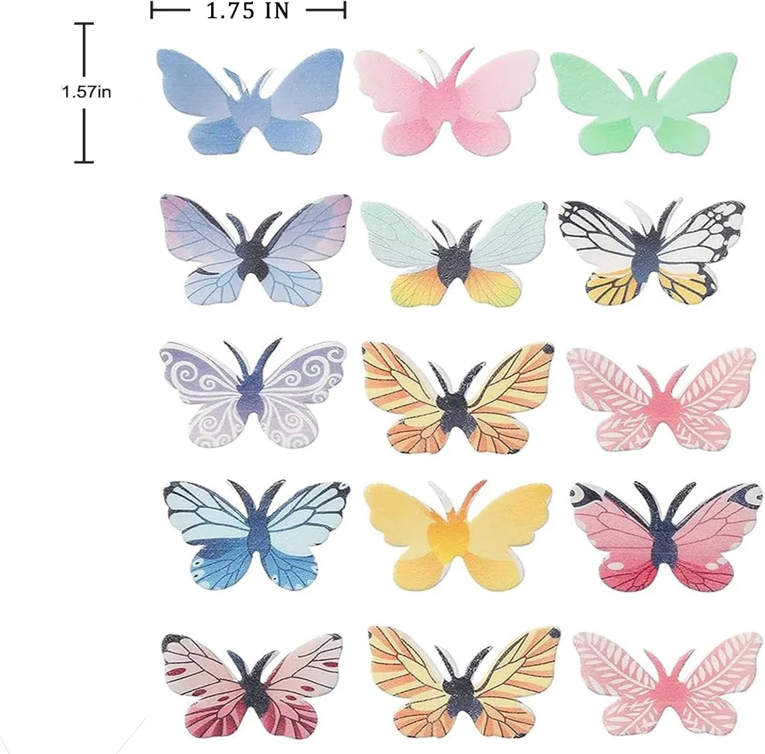 - Package:Wafer paper butterflies comes with 72pcs edible butterfly cake toppers, package with a box . It’s much convenient to storage and can be gift. Wing spans vary is about 1.5 inches mix color