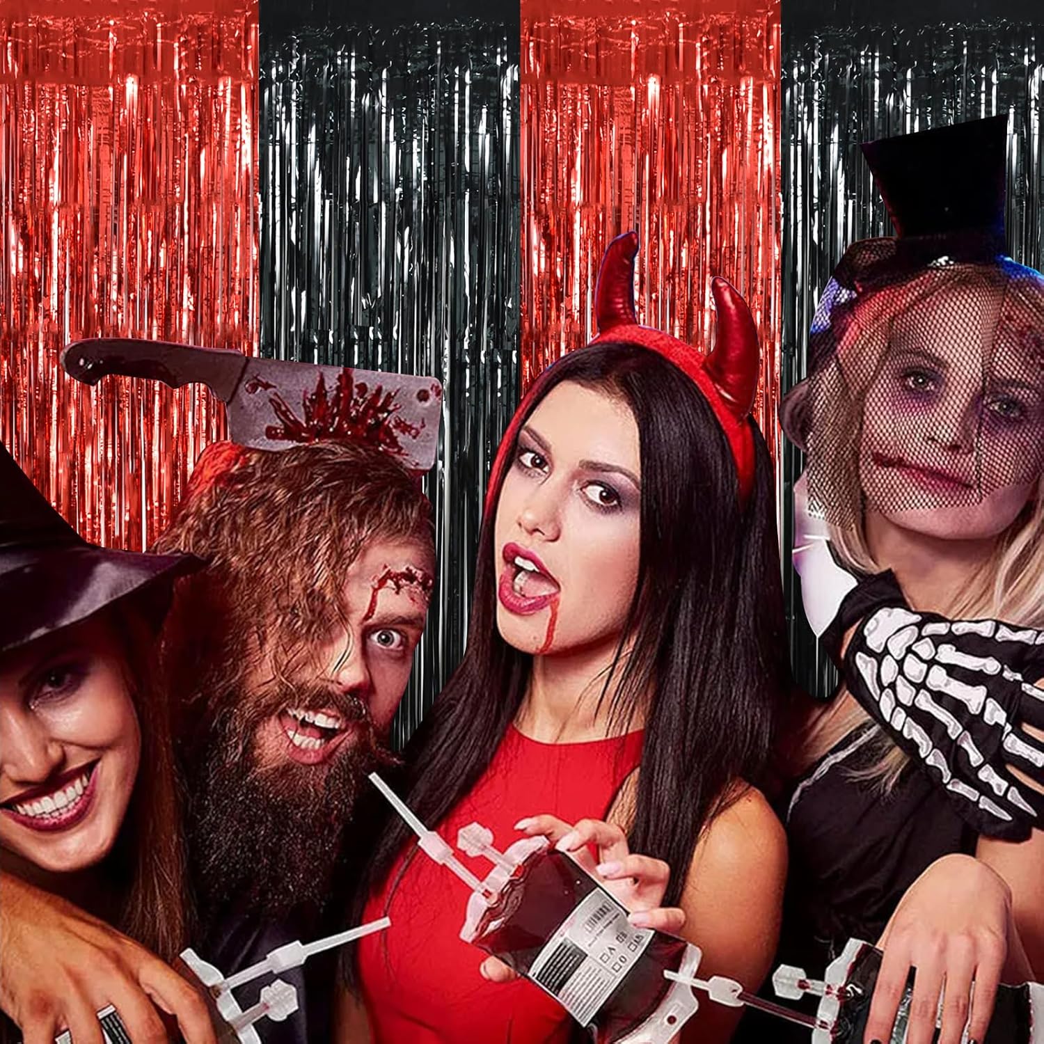 - 【shiny Party Streamer Backdrop】 Want to make your party to be a scream one? Get this foil backdrop curtain as the party backdrop now! You will find that the red and black streamers is great to make your party more exciting!
