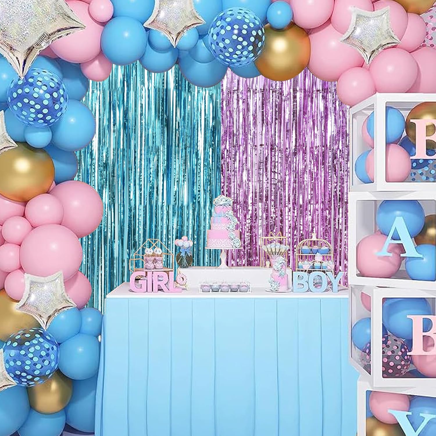 BEISHIDA 2 Pcs Door Streamers Pink and Blue Curtain Baby Shower Party Streamers Gender Disclosure Backdrop Party Decorations (3.28 ft x 6.56 ft)