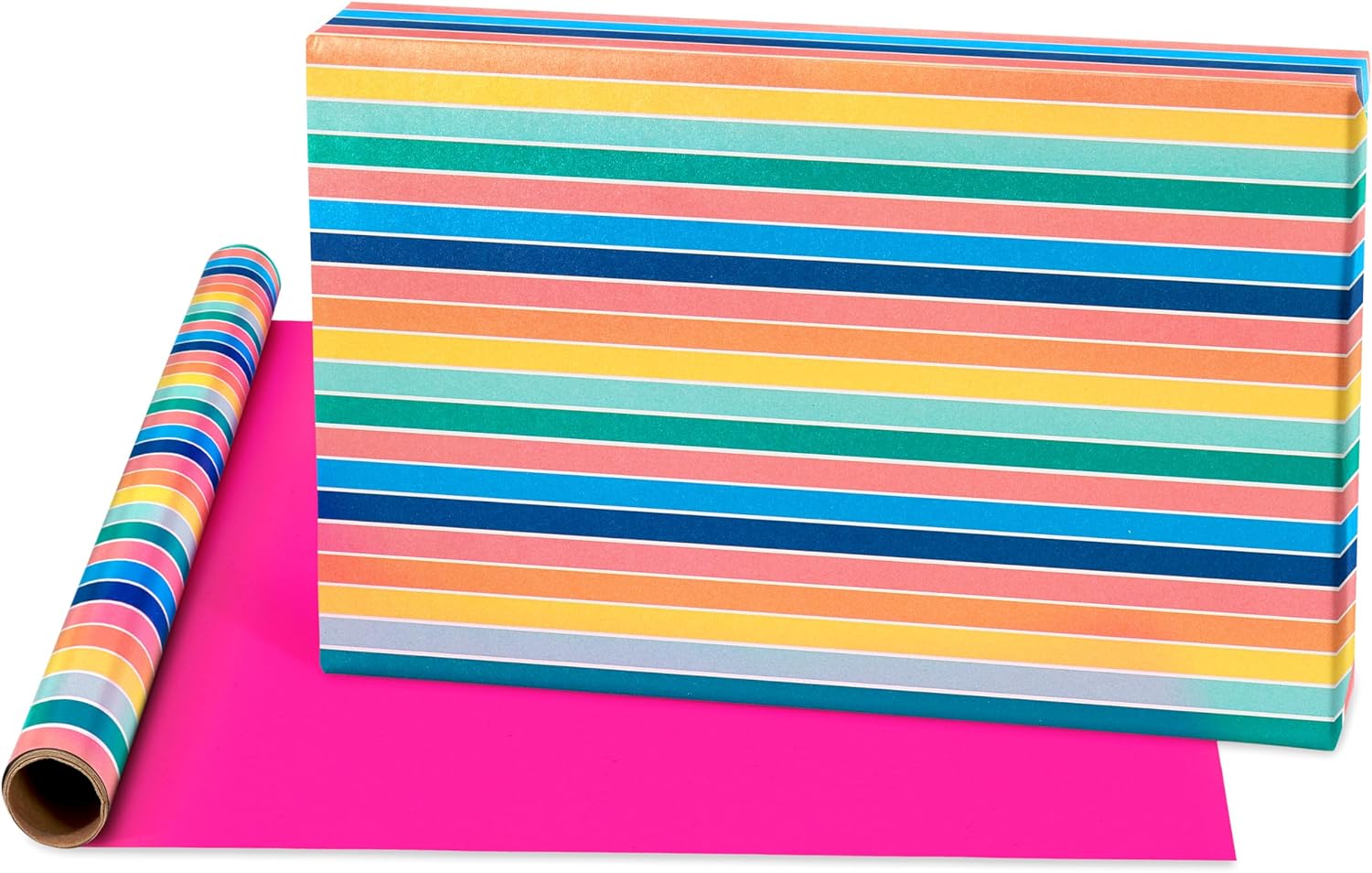 American Greetings 160 sq. ft. Reversible Wrapping Paper Set for Birthdays and All Occasions, Rainbow, Polka Dots, Stripes and Ombre (4 Rolls, 30 in. x 16 ft. each)