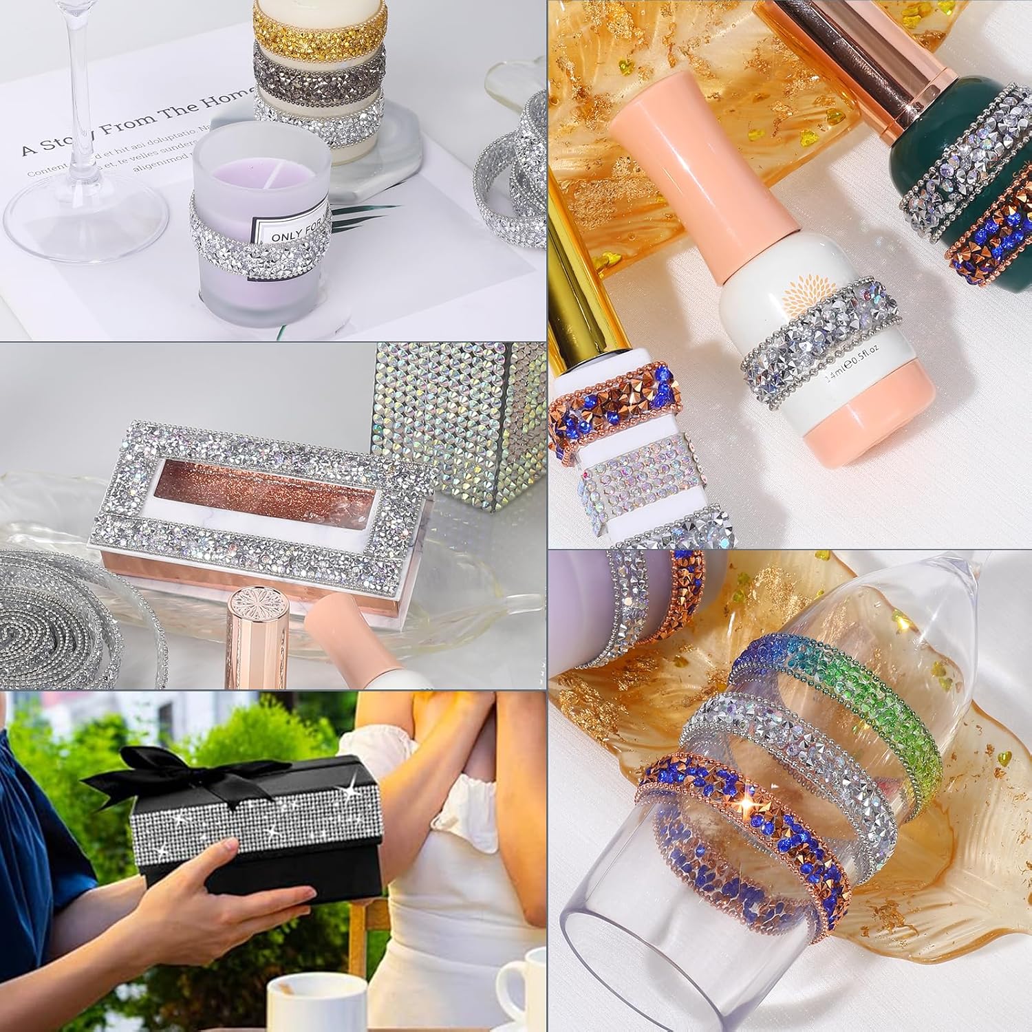 - Self-Adhesive Diamond Ribbon: The self-adhesive design with backing glue makes it possible to stick anywhere as long as the surface is smooth and clean. You cut the rhinestone ribbon into different lengths with scissors, then peel off the back paper of the sticker and paste it on the project you want to decorate.