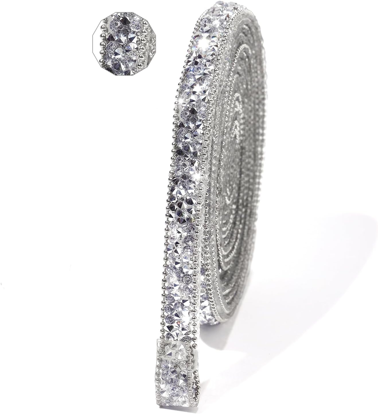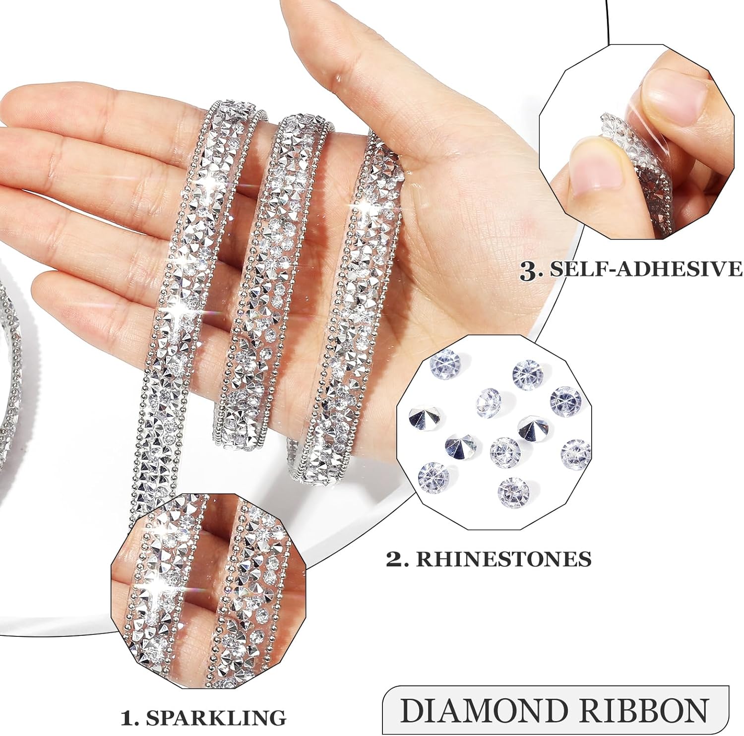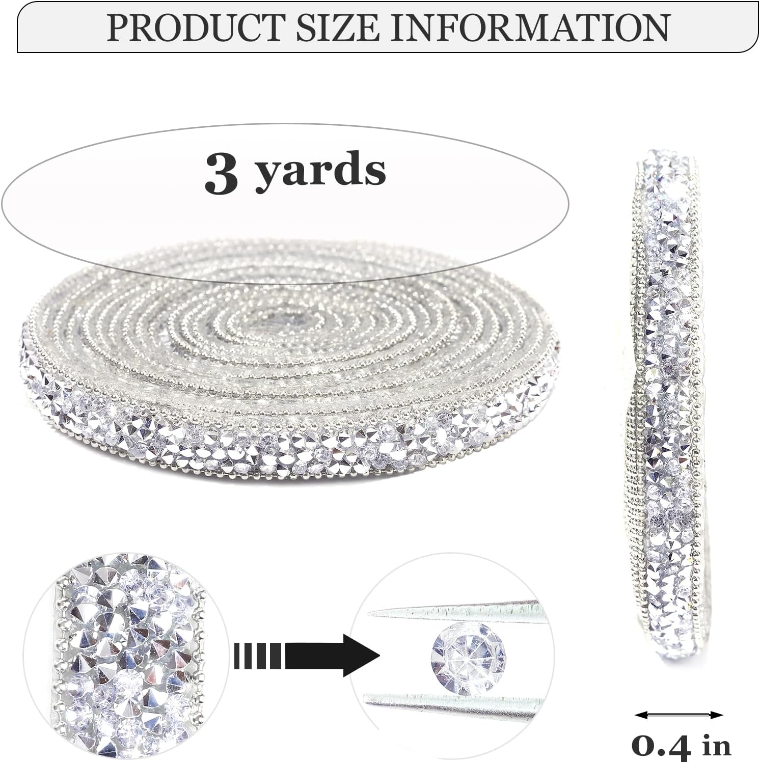 - Silver Rhinestone Ribbon: 1 roll of self-adhesive rhinestone ribbon Sticker, approx 3 yards in length, 1cm/0.4inch in width. (PACKAGE CONTENT)