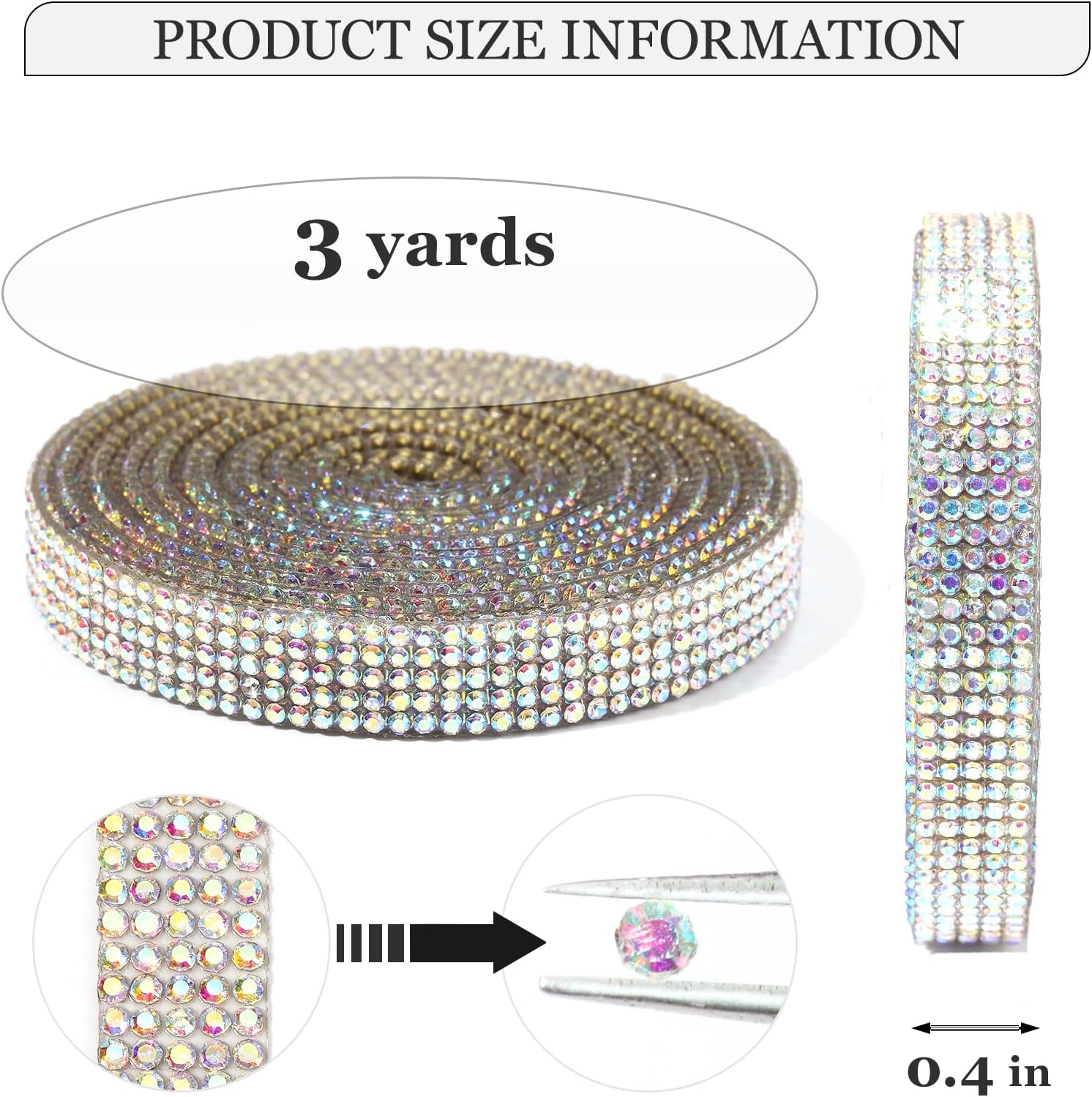 - Silver AB Rhinestone Ribbon: 1 roll of self-adhesive rhinestone ribbon Sticker, approx 3 yards in length, 1cm/0.4inch in width. (PACKAGE CONTENT)