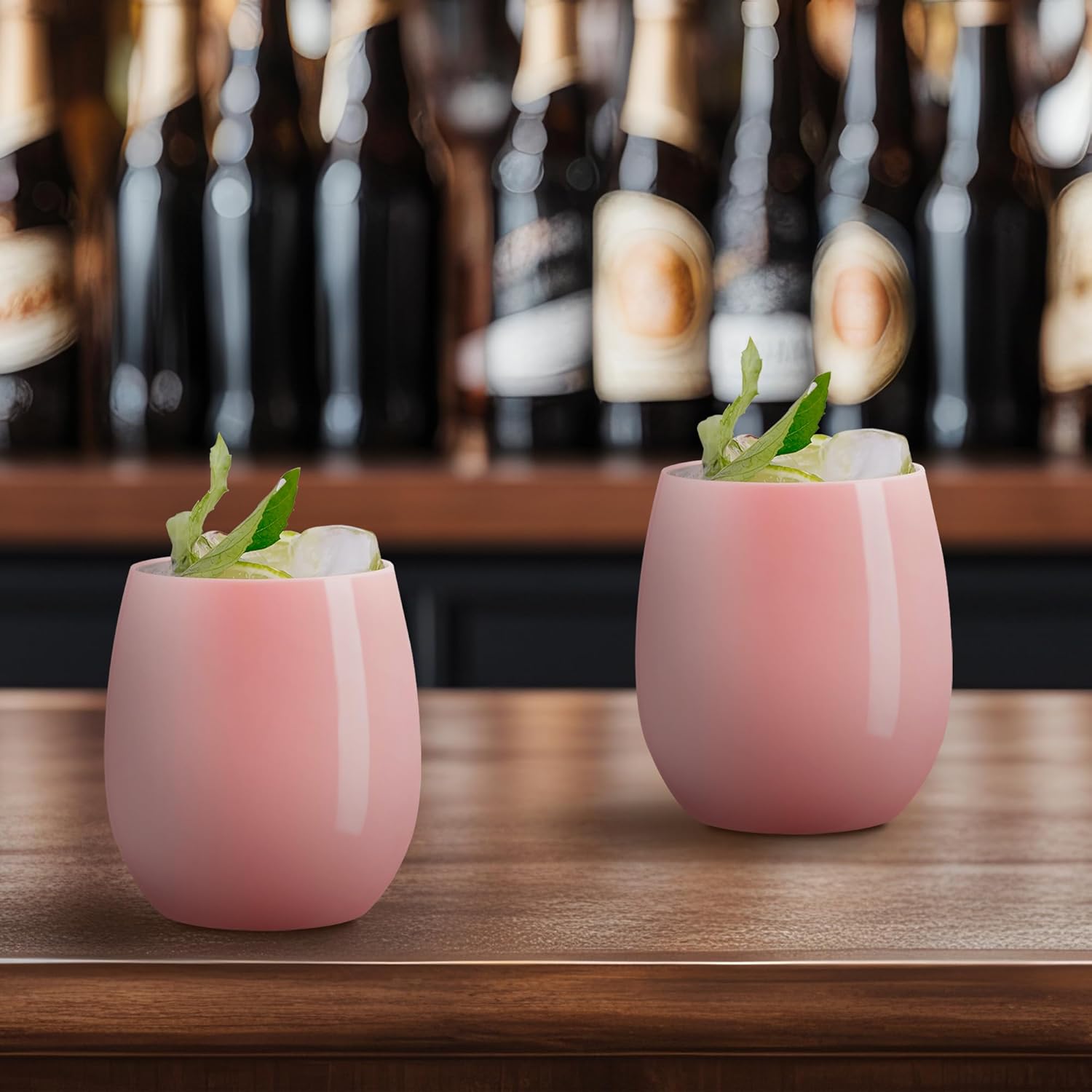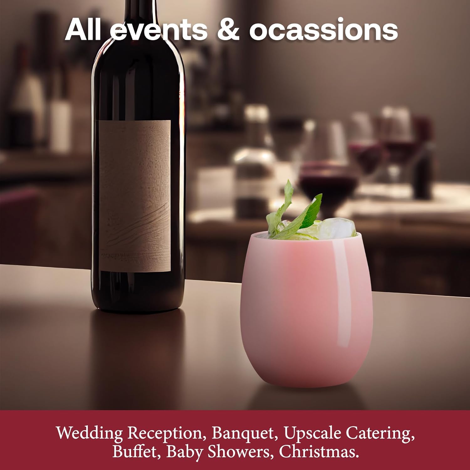 - ELEGANT PINK STEMLESS DESIGN – These 12 oz stemless wine glasses in a chic pink color bring a stylish touch to weddings, birthdays, and special celebrations, adding charm to any occasion.