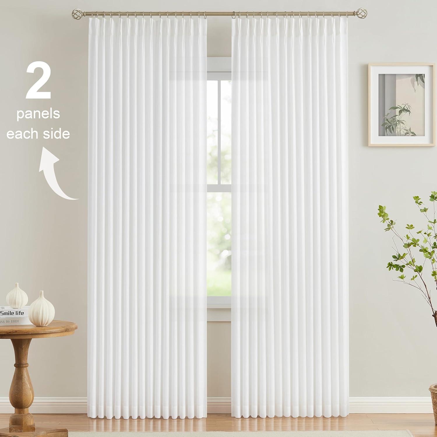 Vision Home White Pinch Pleated Semi Sheer Curtains Textured Light Filtering Window Curtains 90 inch for Living Room Bedroom Rayon Blended Pinch Pleat Drapes with Hooks 2 Panels 40" Wx90 L
