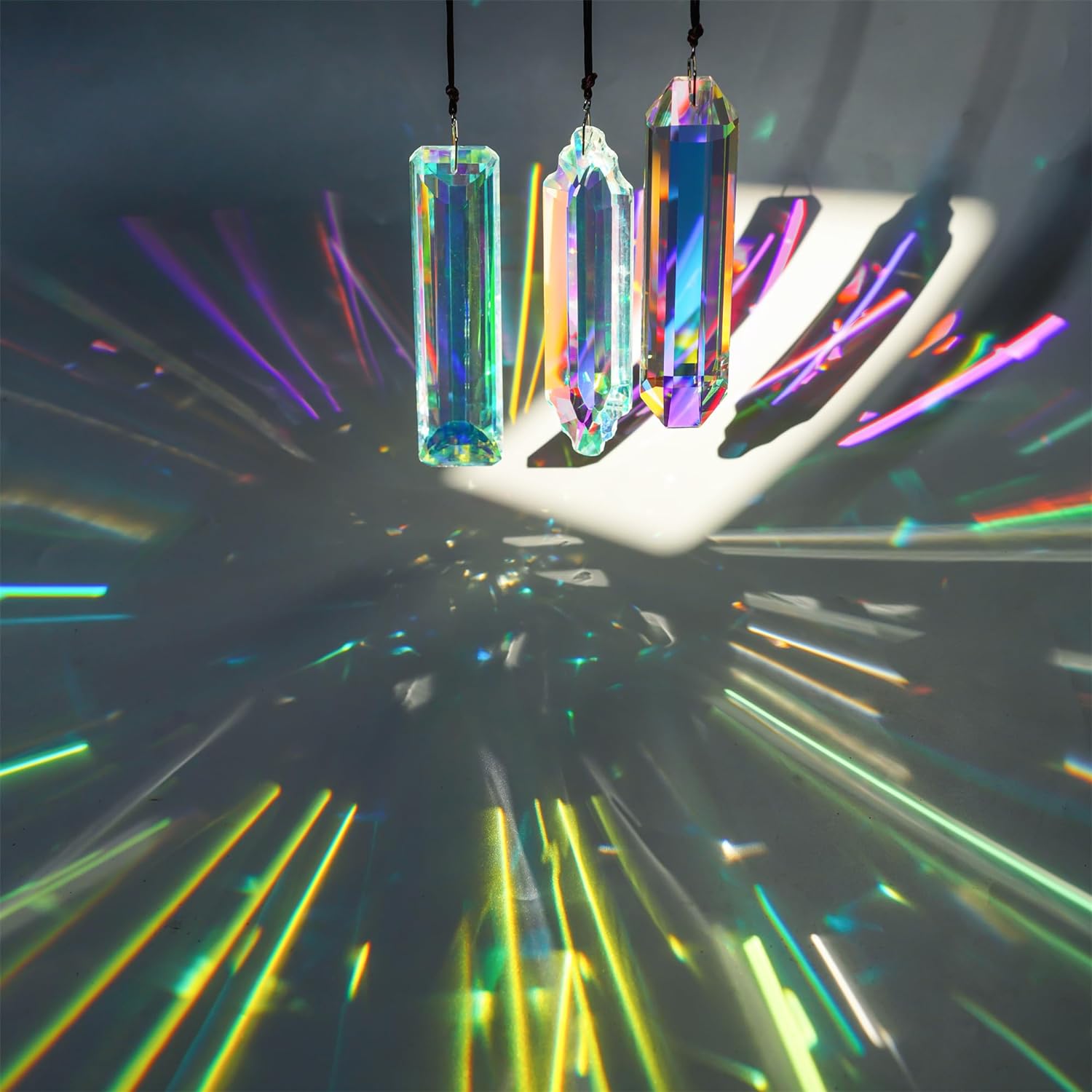 - Captivating Rainbow Maker: Illuminate your space with vibrant and mesmerizing colors using these 3PCS Crystal Suncatcher Prisms. The prisms refract sunlight, creating a beautiful display of rainbows that will add a touch of magic to any room or garden.