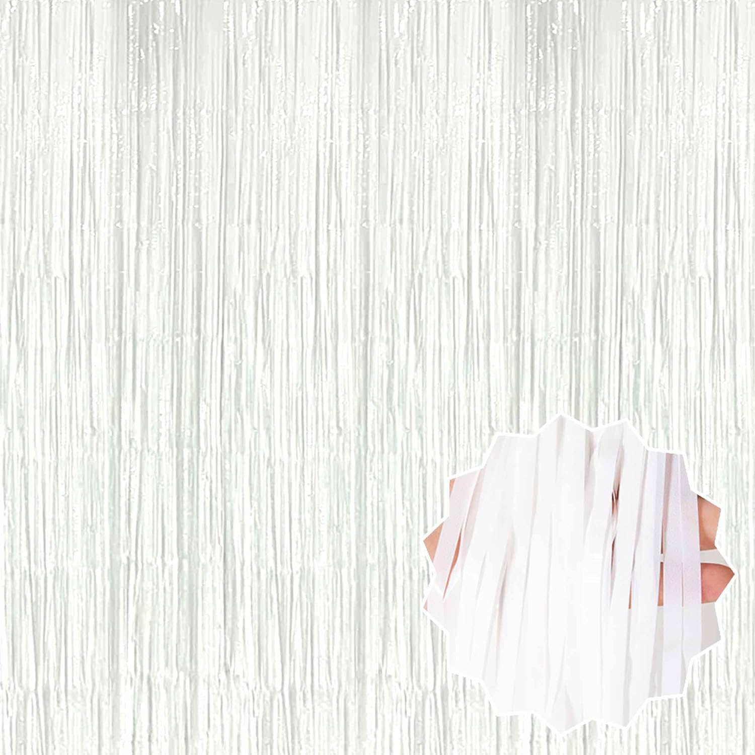 6 Pack Macaron White Foil Fringe Curtains Backdrop, 3.28 x 8.2 Ft Metallic Streamers Tinsel Curtains Background for Photo Booth, Birthday, Weddings, Carnivals, Graduation, Themed Party Decorations