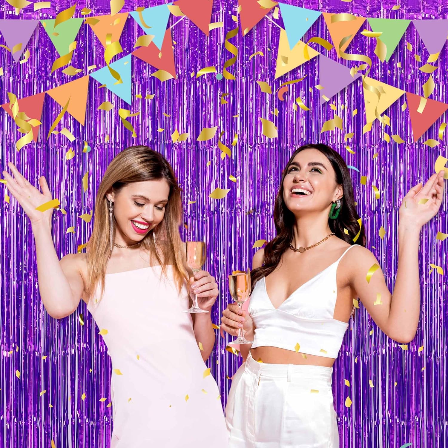 3 Pack Purple Foil Fringe Curtains Backdrop, 3.28 x 9.8 Ft Metallic Streamers Tinsel Curtains Background for Photo Booth, Birthday, Halloween, Christmas, Thanksgiving, New Year Party Decorations