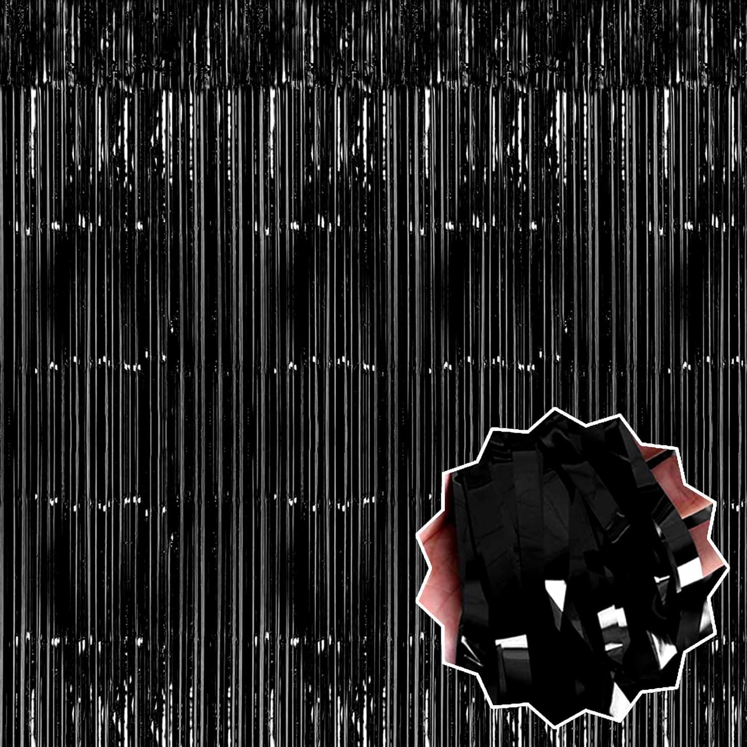 - Package and size: 6 Packs Foil Fringe Streamers Curtain Backdrop. The size is 3.28 x 8.2 feet. It's long, enough to fit any party occasion. Made of metallic foil material, shiny and creating dazzling effects, adding luxury and visual impact to the party