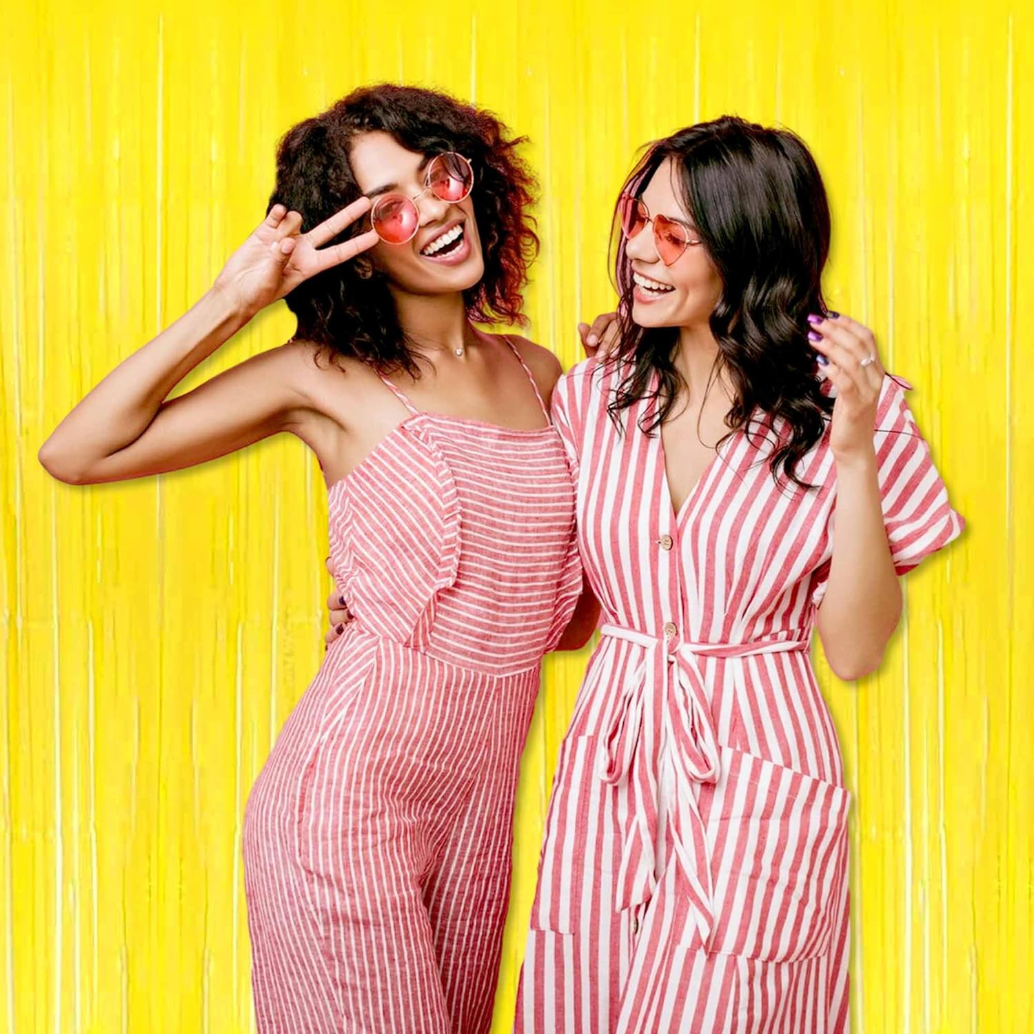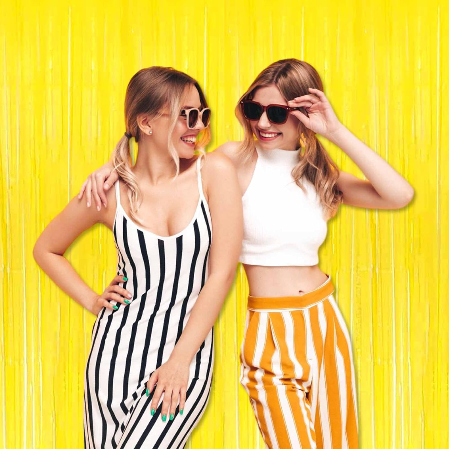 6 Pack Macaron Yellow Foil Fringe Curtains Backdrop, 3.28 x 8.2 Ft Metallic Streamers Tinsel Curtains Background for Photo Booth, Birthday, Weddings, Carnivals, Graduation, Themed Party Decorations