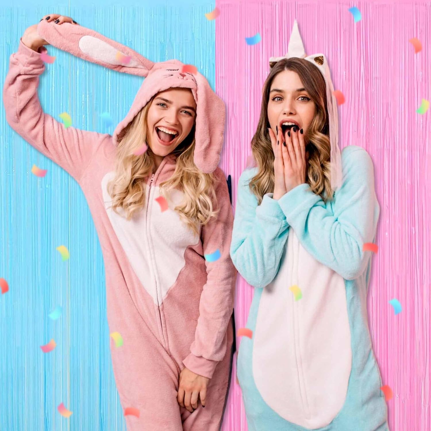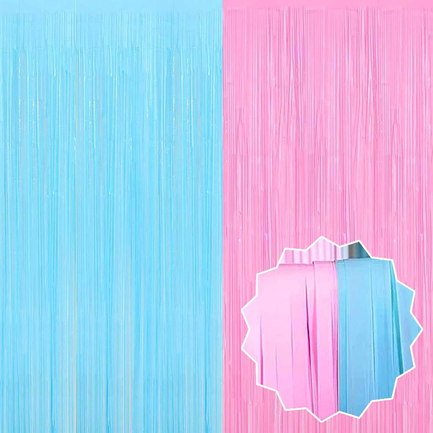 6 Pack Macaron Pink Blue Foil Fringe Curtains Backdrop, 3.28 x 8.2 Ft Metallic Streamers Tinsel Curtains Background for Photo Booth, Birthday, Weddings, Carnivals, Graduation, Themed Party Decorations
