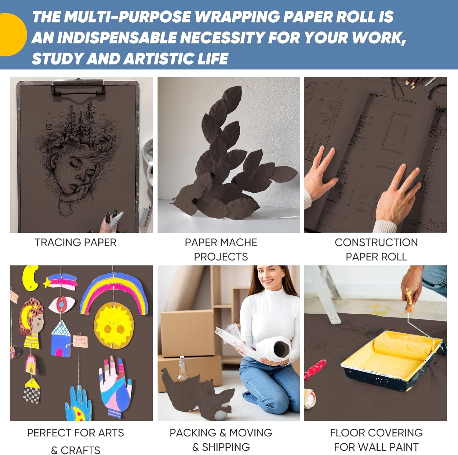 - 【Versatile Kraft Paper rolls】Our kraft paper rolls have a wide application for many things: decor, writing, drawing, sketching, painting, coloring, sketchpad, origami, easel paper, packing paper, poster paper, drafting paper, construction paper, wall art, paper mache paste, fun crafting, art making and more. Whether you are an artist, crafter, designer, DIY enthusiast, parent or teacher, this roll of vellum is a must have necessity in your kit.